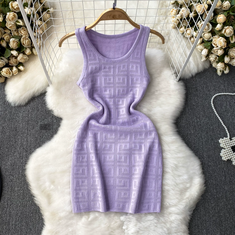 Round neck jacquard summer Korean style short hip-hugging tank top dress