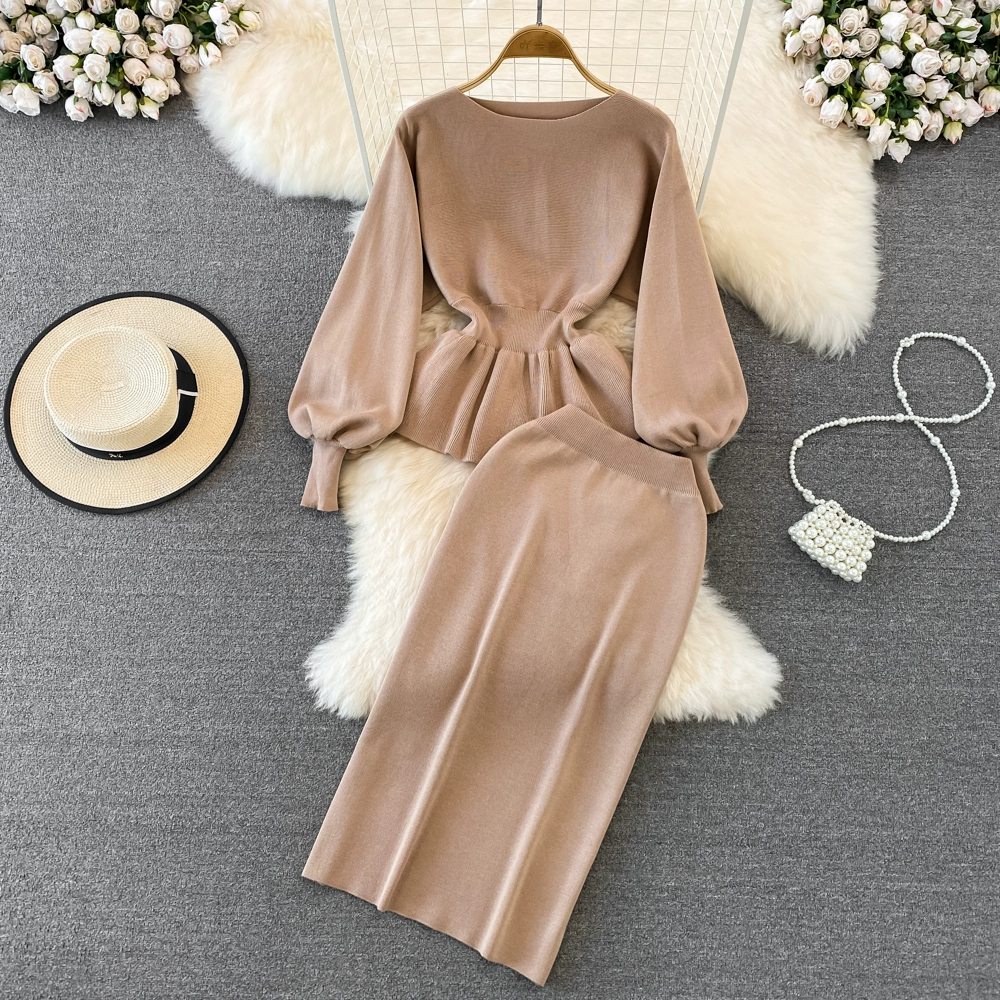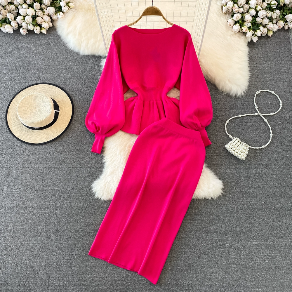 | nameOriginal | Round neck knitted top with high waist and hip-hugging fashion suit |