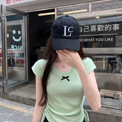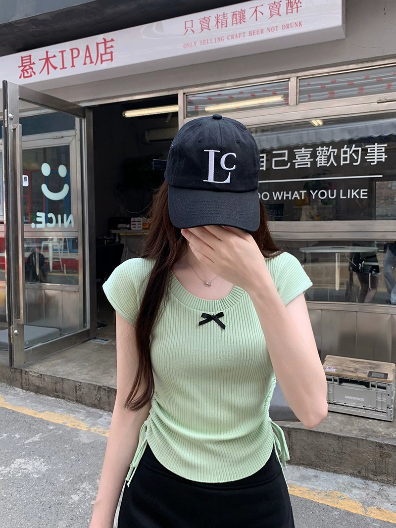 | nameOriginal | Round neck Korean style gentle drawstring pleated short bow |