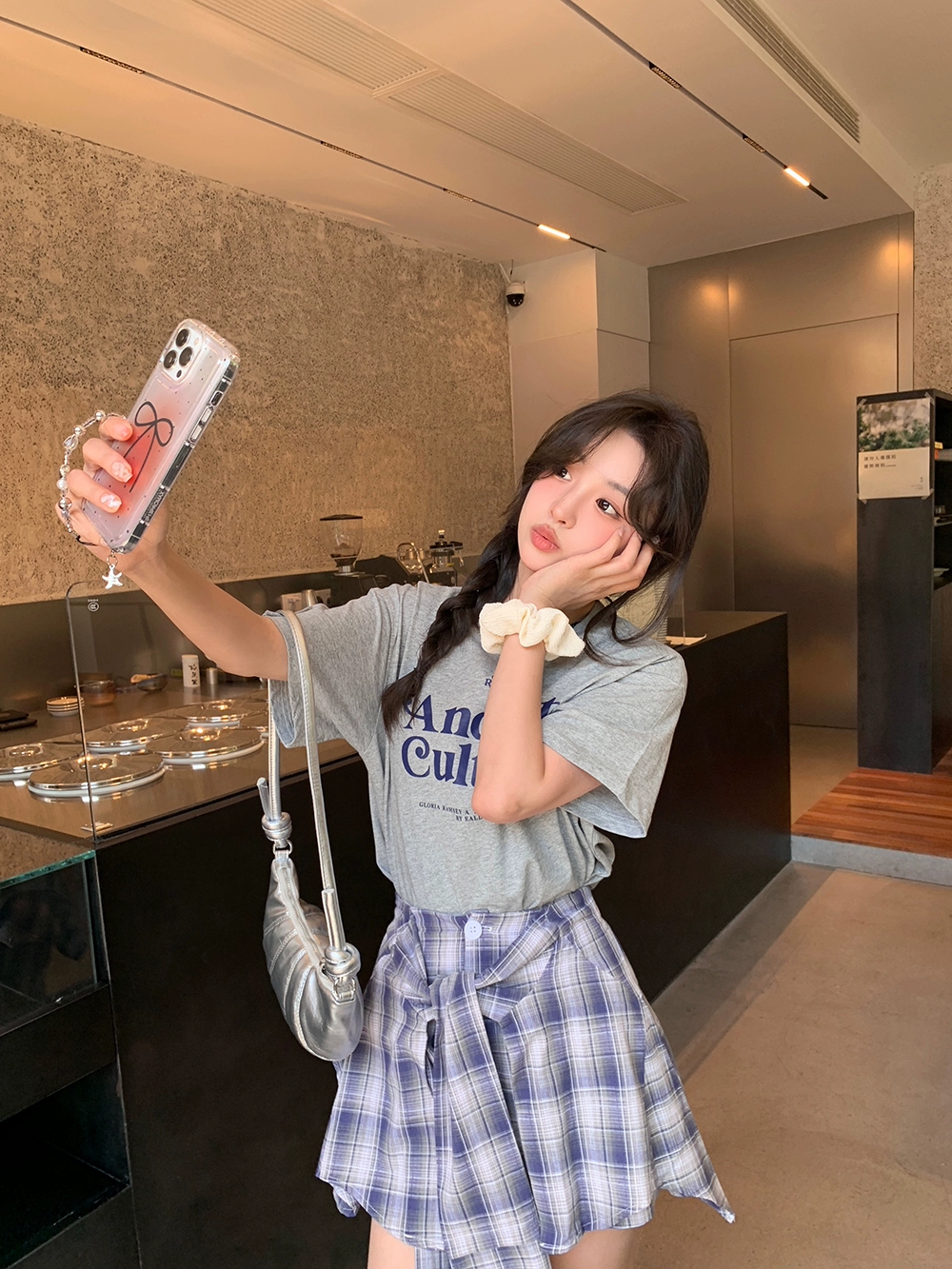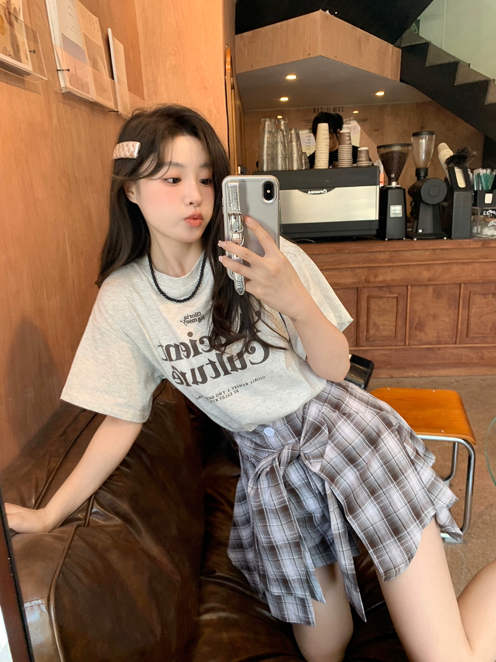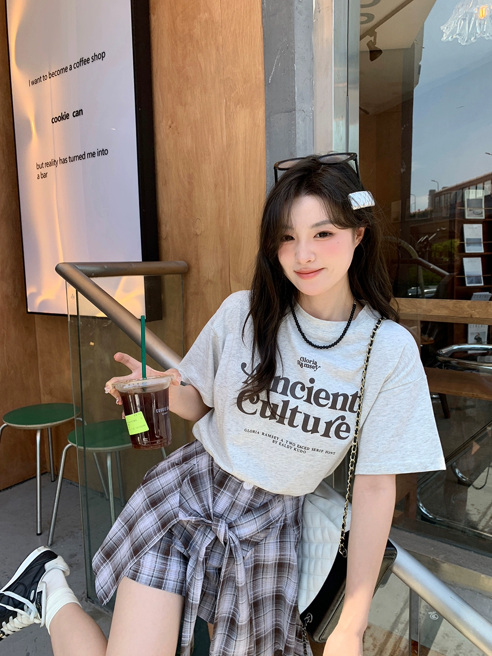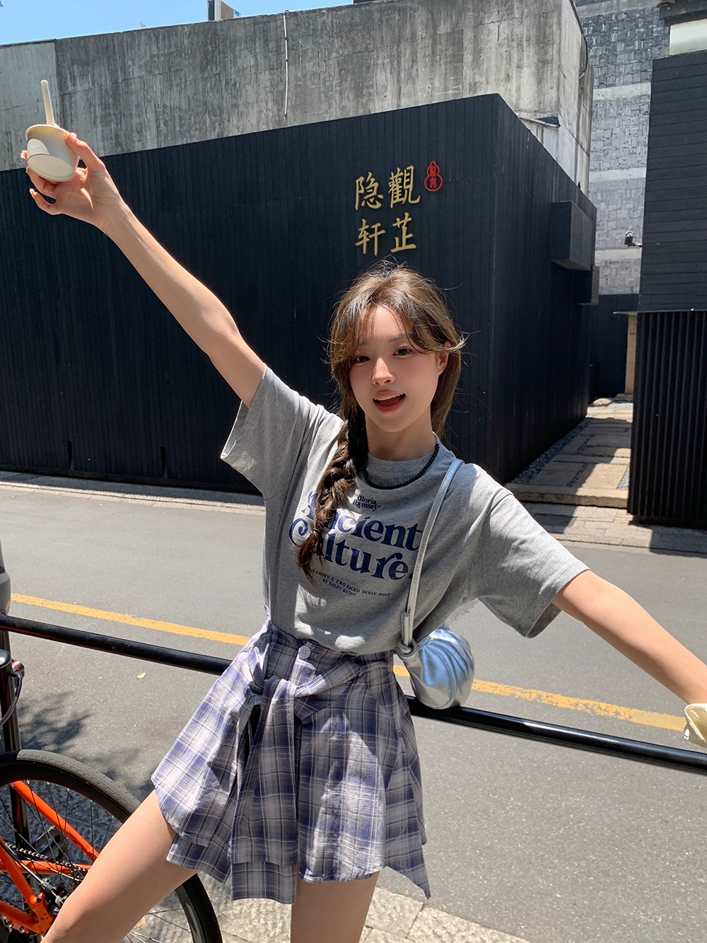 | nameOriginal | Round neck letter plaid culottes girls fashion suit |