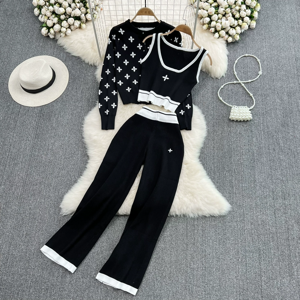 Round neck long sleeve vest casual wide leg pants fashion suit