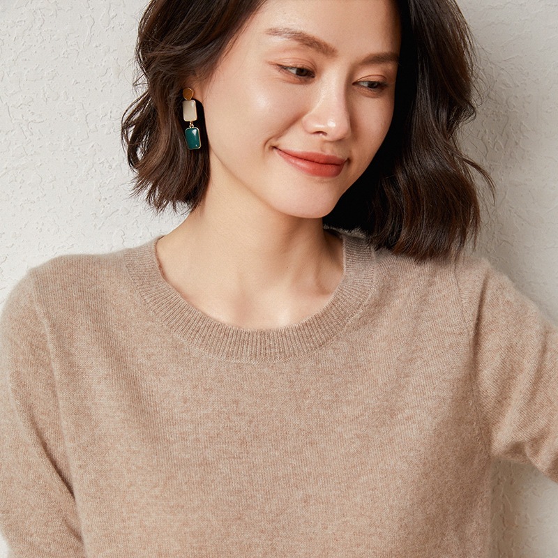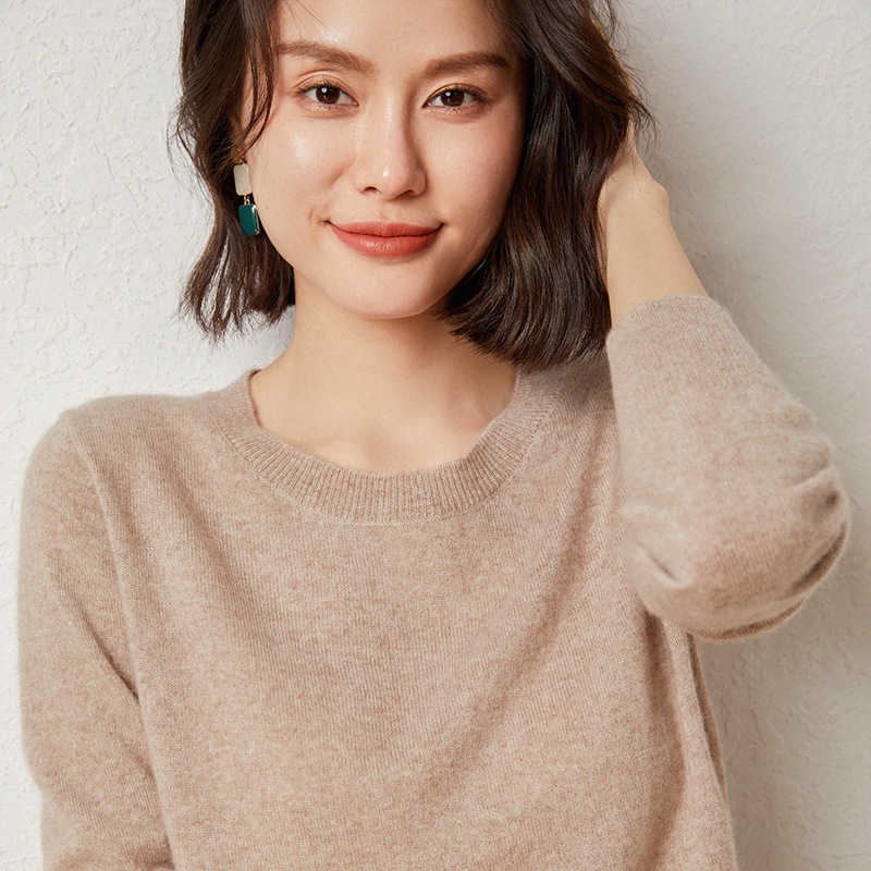 Round neck long sleeve wool sweater Women's Western style pullover autumn and winter New loose outer wear temperament bottoming shirt