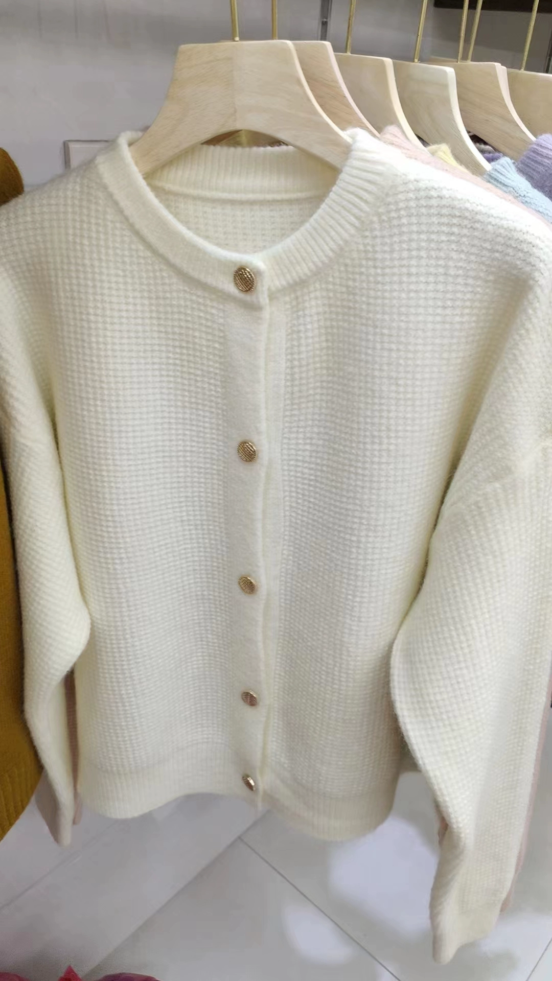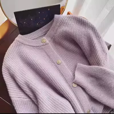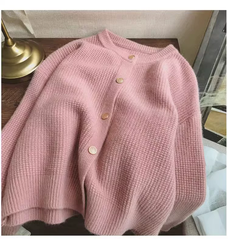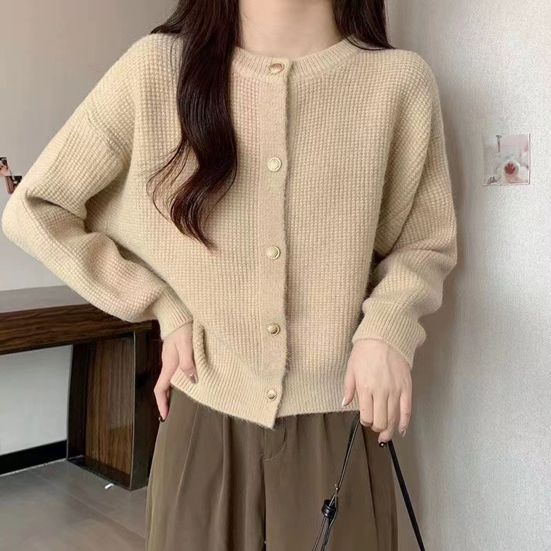 | nameOriginal | Round neck loose and versatile soft waxy waffle cardigan sweater |
