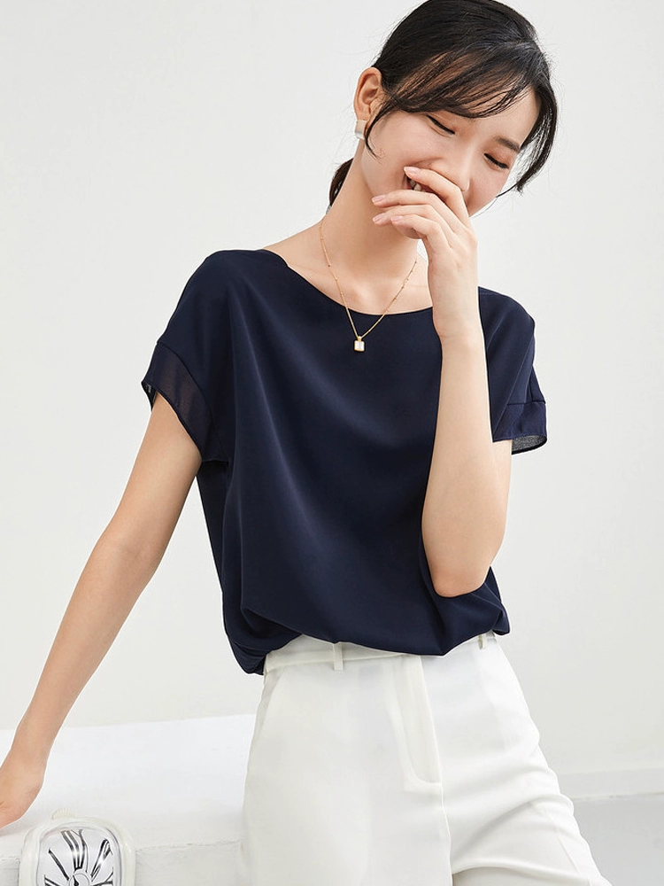 | nameOriginal | Round neck loose, simple and beautiful age-reducing niche chiffon shirt |