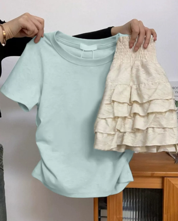 | nameOriginal | Round neck niche slim-fitting top short-sleeved T-shirt |