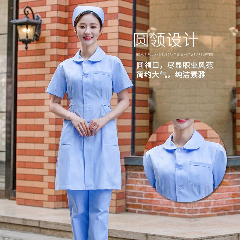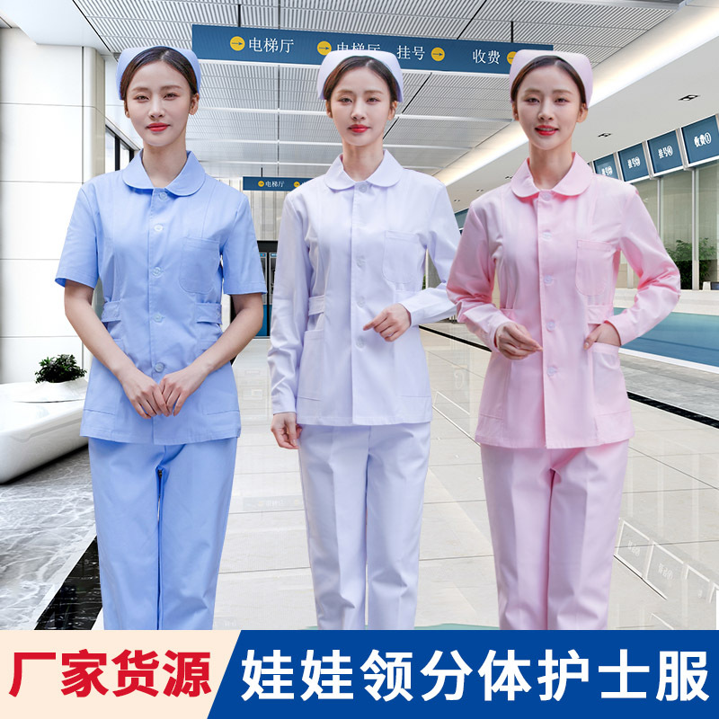 Round neck nurse suit split nurse suit blue and white powder short sleeve women’s long sleeve two-piece factory direct spot