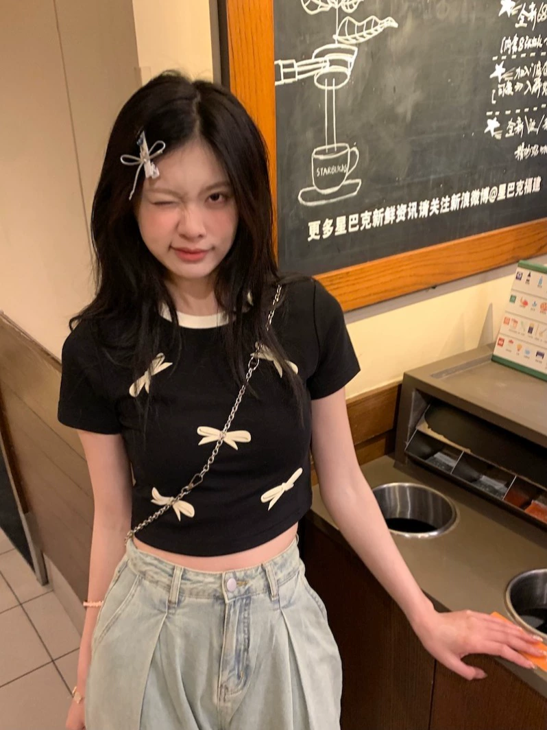 | nameOriginal | Round neck pullover short sleeve summer slim fit black bow |