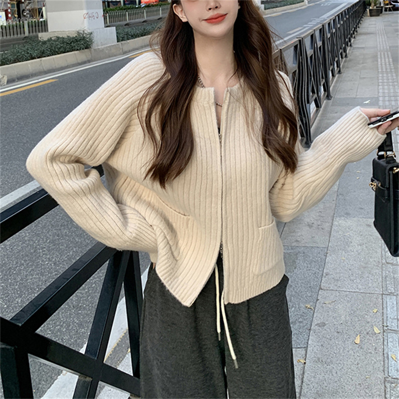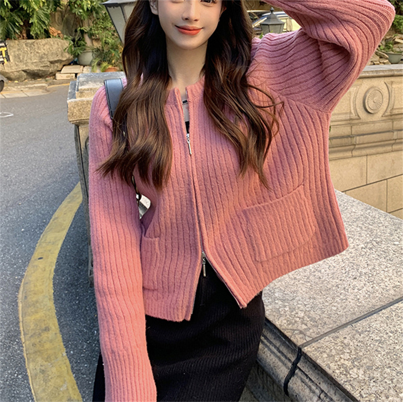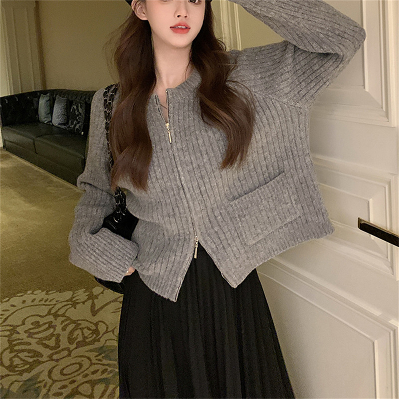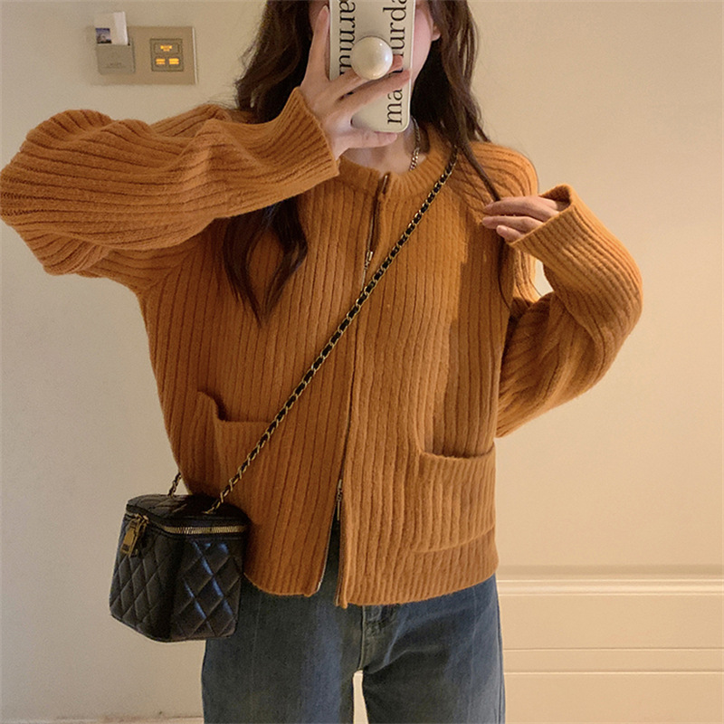 | nameOriginal | Round Neck Short Zipper Sweater Coat Women's Early Spring New Design Sense Loose High-end Sense Small Knitted Cardigan |
