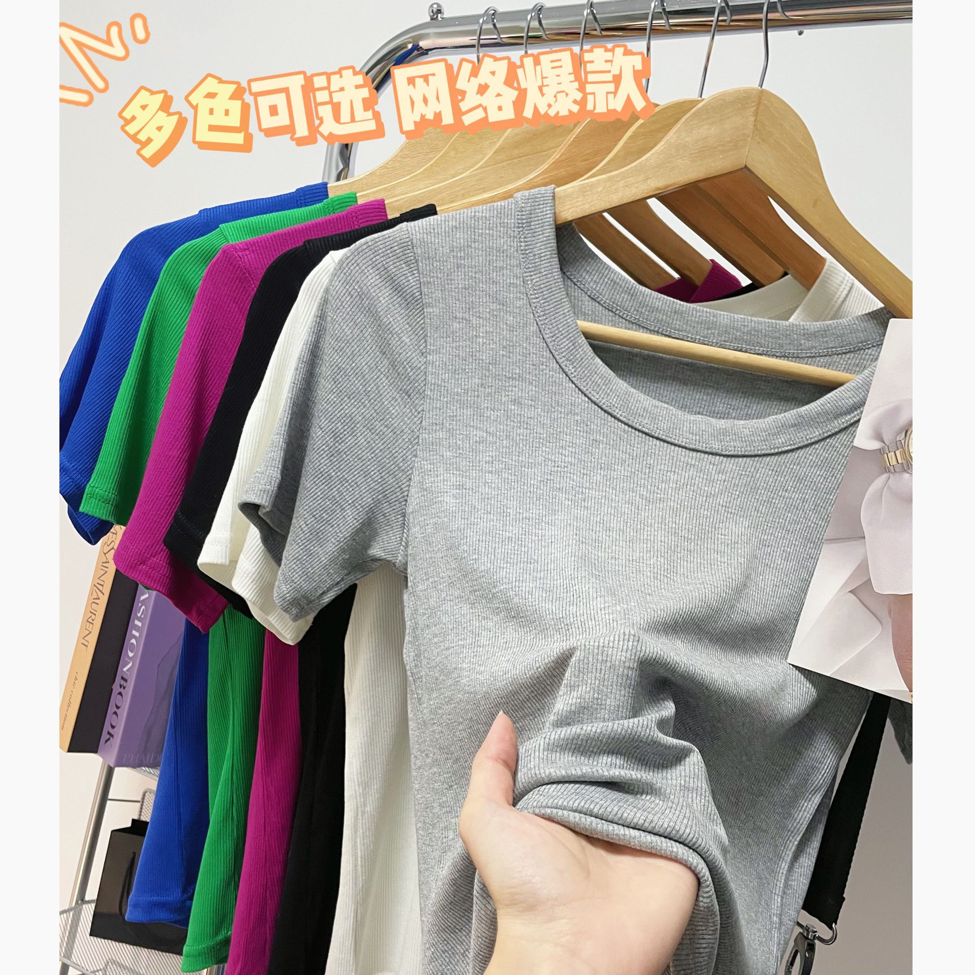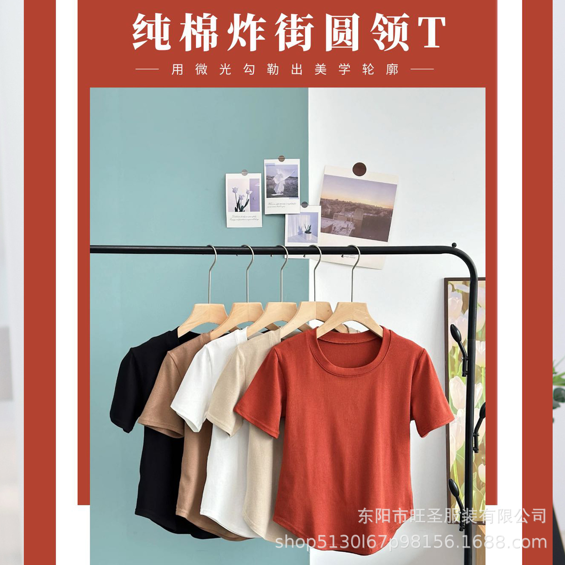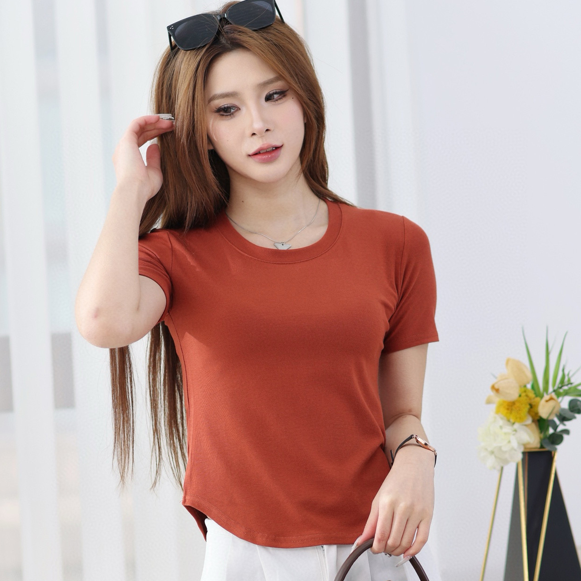 | nameOriginal | Round neck shoulder short sleeve t-shirt women's slim fit slimming 2024 Summer new fashionable curved hem top |