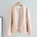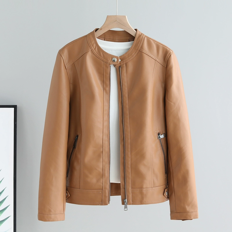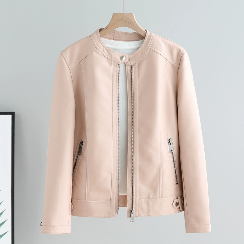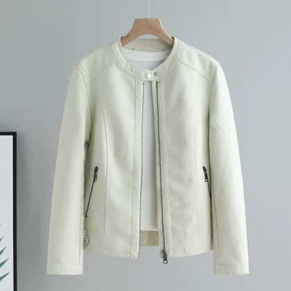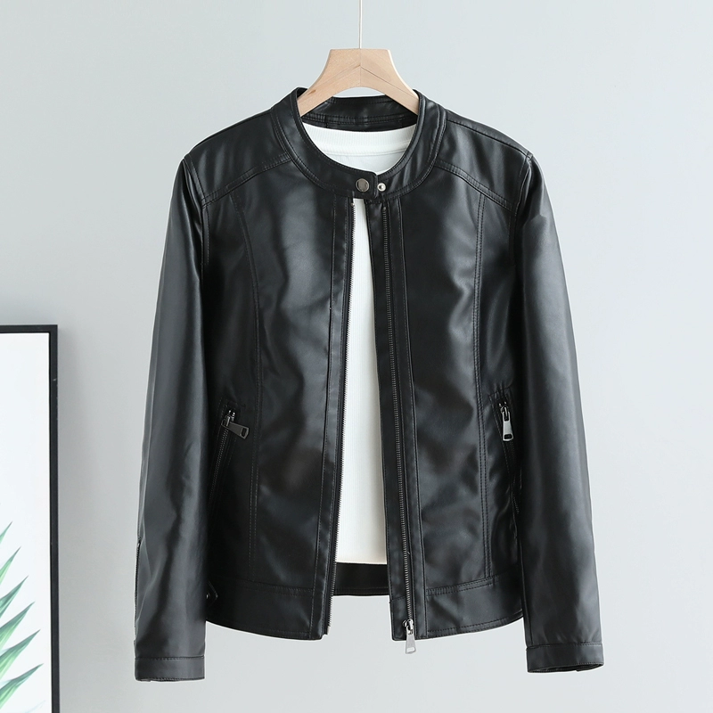 | nameOriginal | Round neck, soft, slimming, washed design, outer leather jacket |