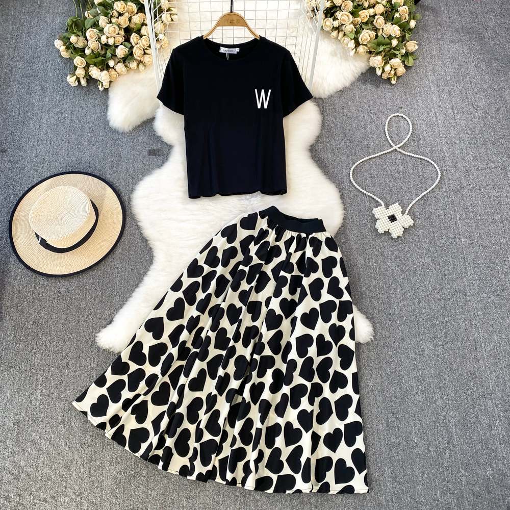 | nameOriginal | Round neck T-shirt, high waist, slimming, A-line, wide swing fashion suit |