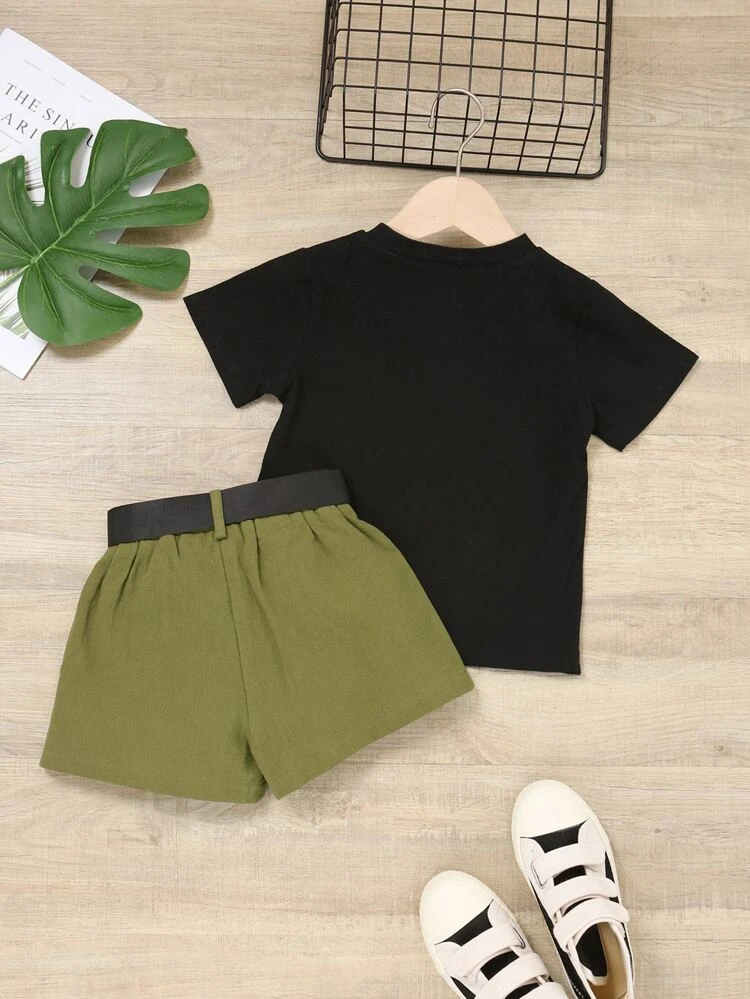 | nameOriginal | Toddler Girls Round Neck Tee & Dual Pocket Belted Shorts |