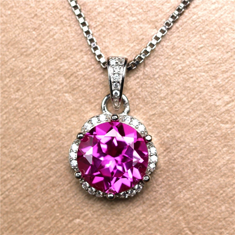 | nameOriginal | Round rose tourmaline pendant silver inlaid women's Japanese and Korean version colored gemstone sterling silver plated 18K rose gold sweet |