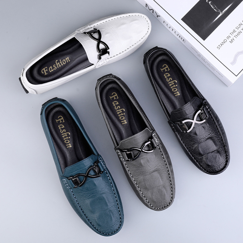 | nameOriginal | Round Toe Men's Cowhide Men's Casual Shoes Flat Simple Bean Shoes Business Casual Crocodile Pattern Men's Shoes |