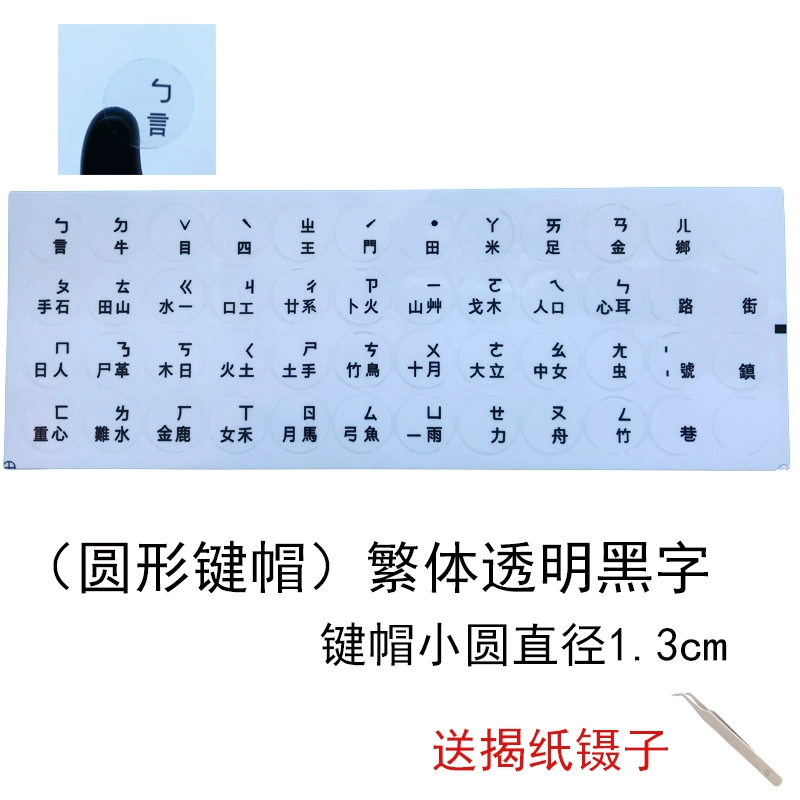 Round transparent keyboard sticker key mask desktop computer notebook characters English Cangjie pronunciation Korean Russian