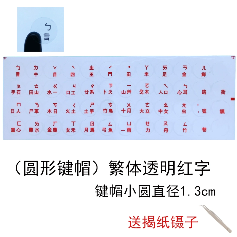 Round transparent keyboard sticker key film desktop computer notebook characters English Cangjie phonetic Korean Russian