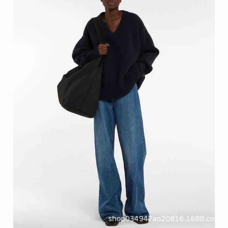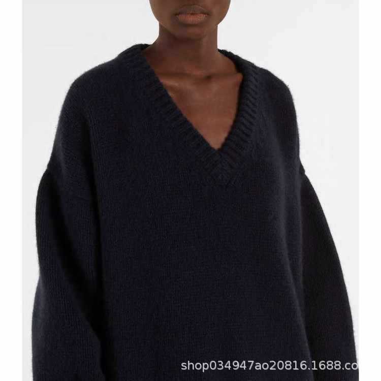| nameOriginal | Row pullover v-neck sweater women's slimming outer wear 2023 early spring simple wool soft glutinous loose dark blue top |