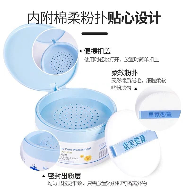 | nameOriginal | Royal baby baby talcum powder newborn children genuine goods powder puff Four Seasons universal baby corn prickly heat powder |