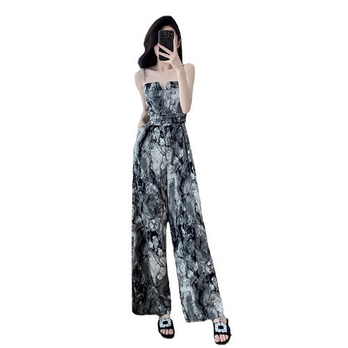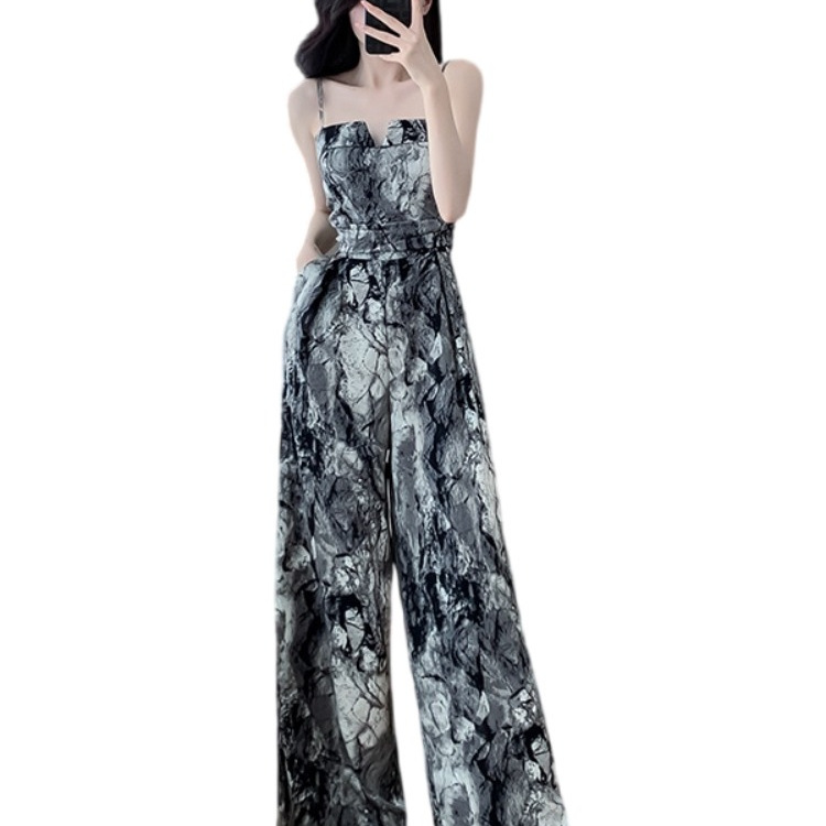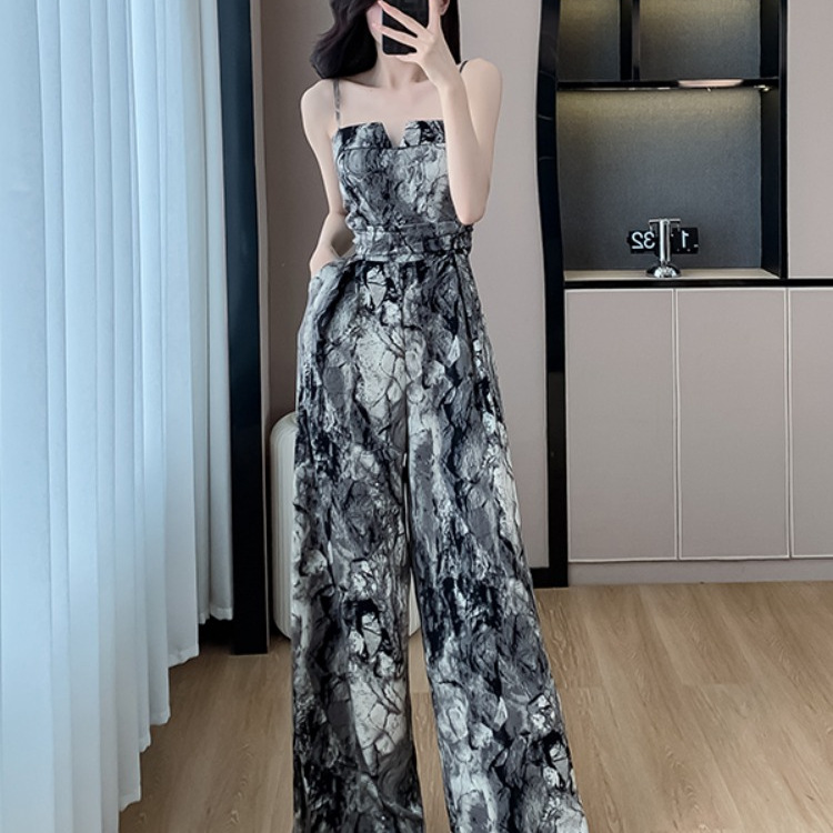 | nameOriginal | Royal Sister Style Fashion Fried Street Elegant Ink Printing Suspenders Pants Design Sense Drape Wide Leg Pants |