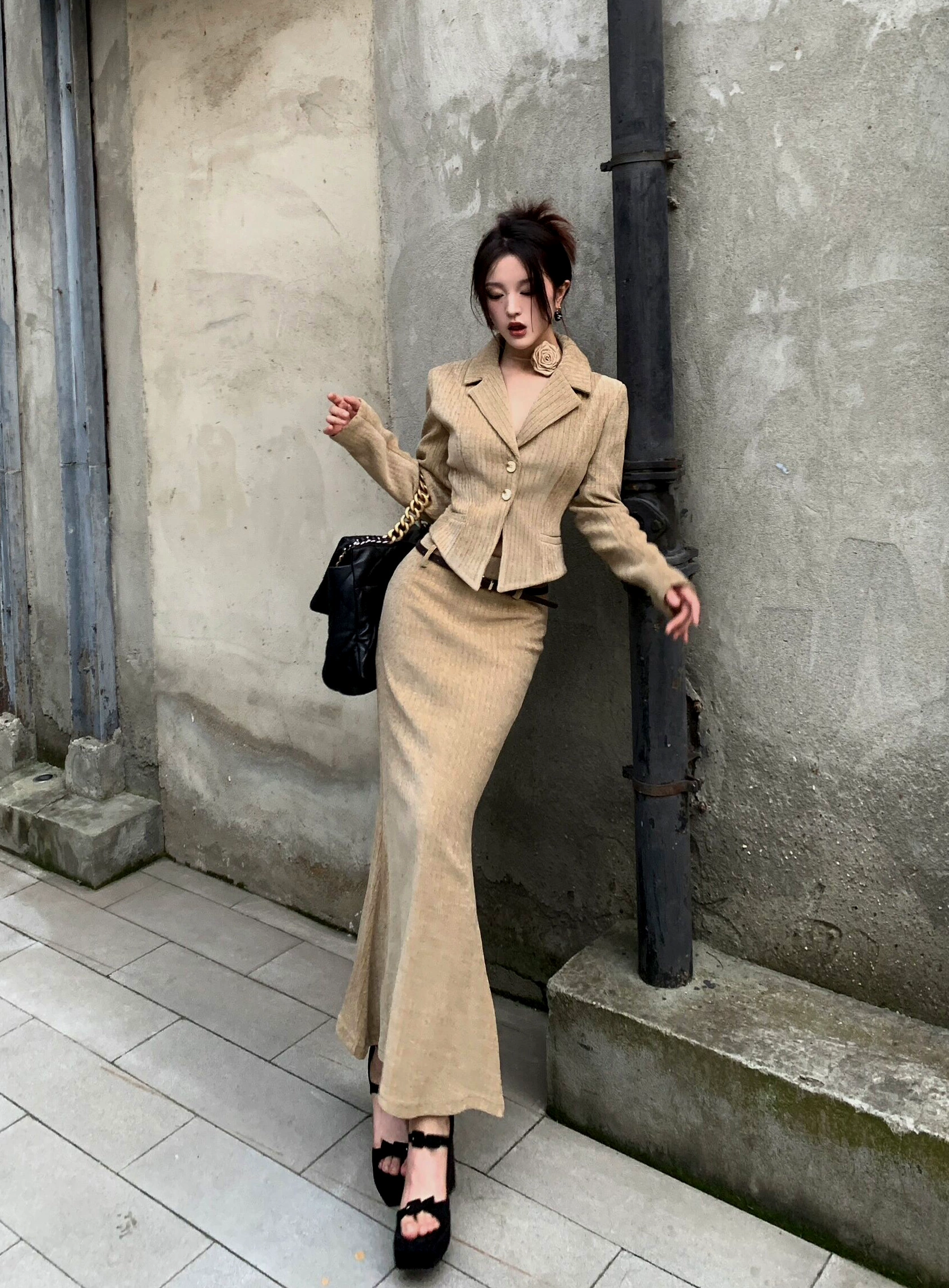 | nameOriginal | Royal sister-style high-waist slimming hip-hugging long skirt blazer |