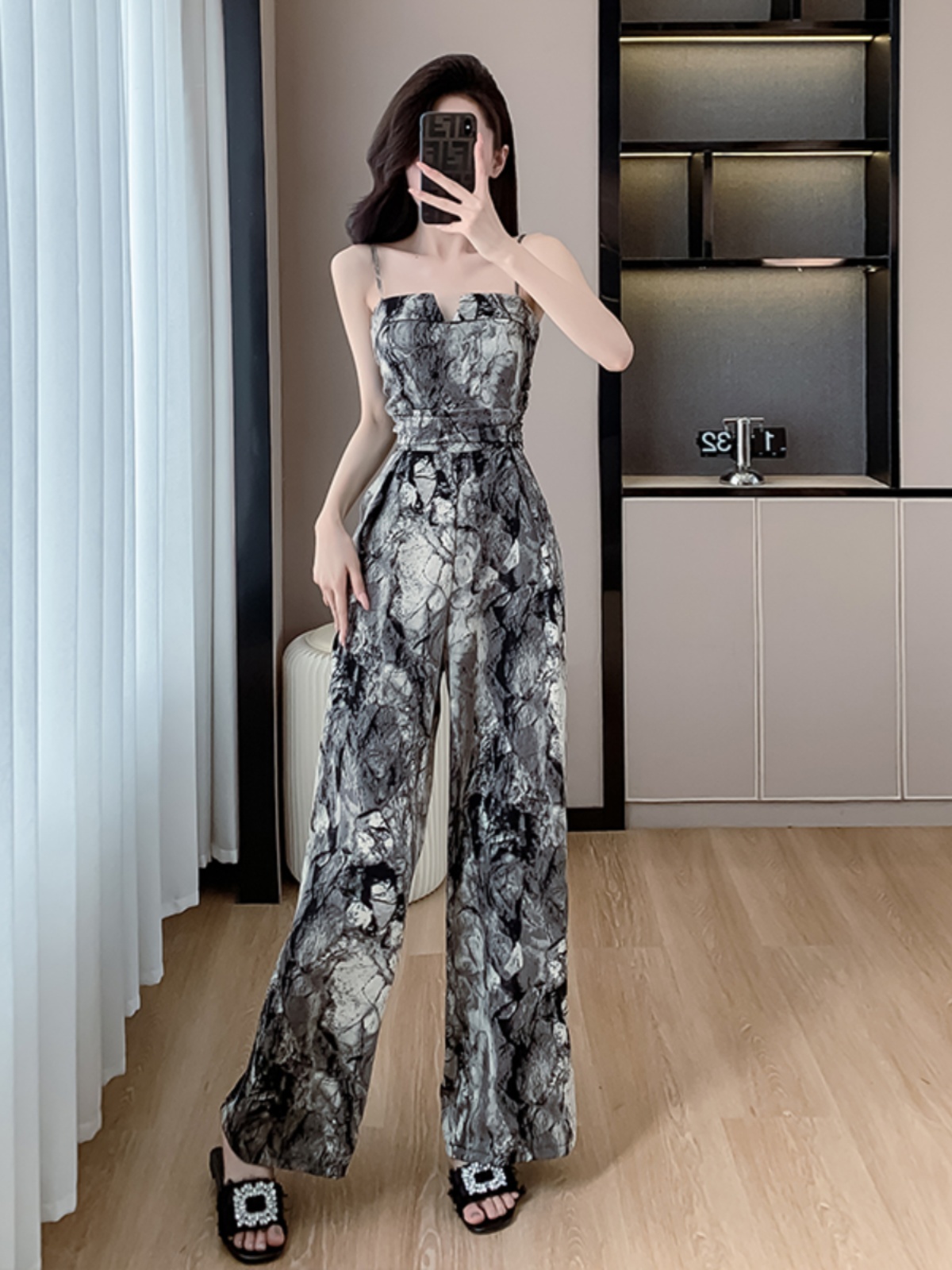 | nameOriginal | Royal sister style printed suspender jumpsuit suit ink |