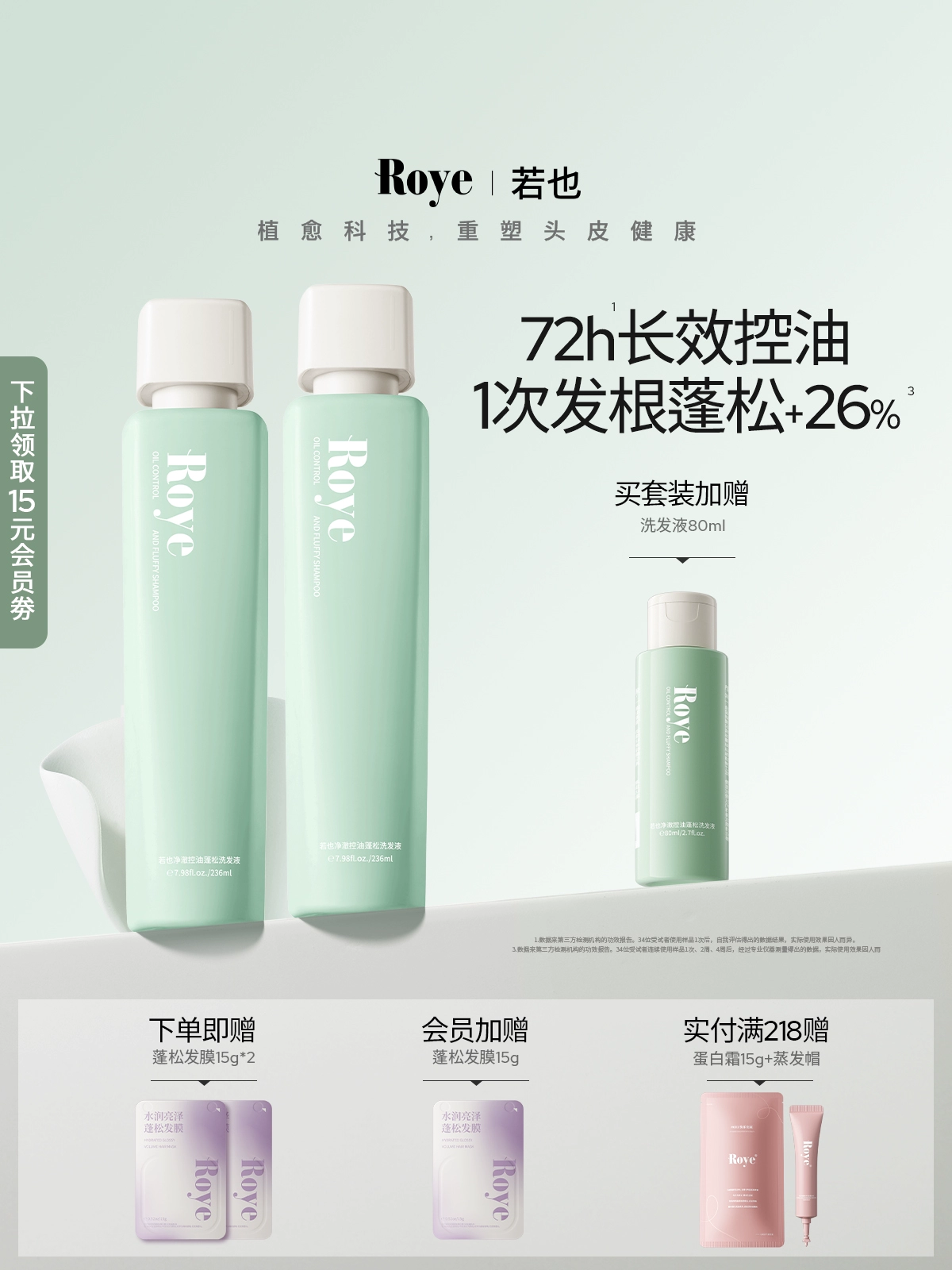 Roye Ruoye Shampoo Oil Controlling Fluffy Shampoo Cream for Men and Women Shampoo Dew Anti-Dandruff Anti-itch Cleansing and Oil Removal