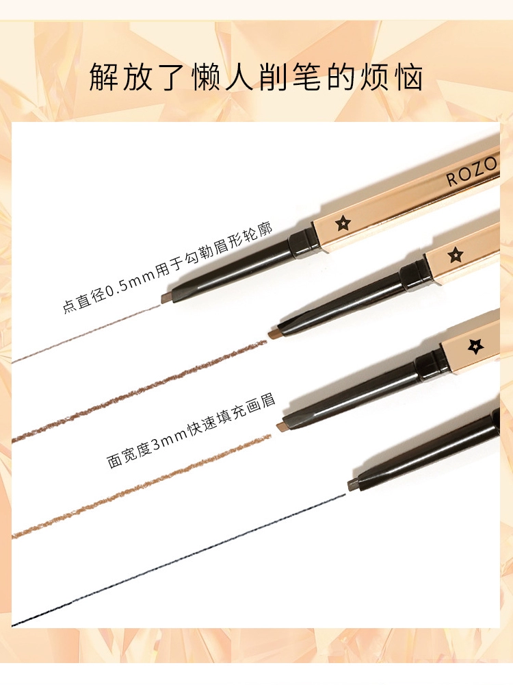 ROZO small gold diamond ultra-fine eyebrow pencil waterproof, long-lasting, non-fading, gray-brown thin head, natural three-dimensional novice beginner