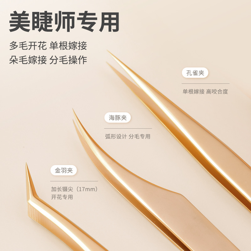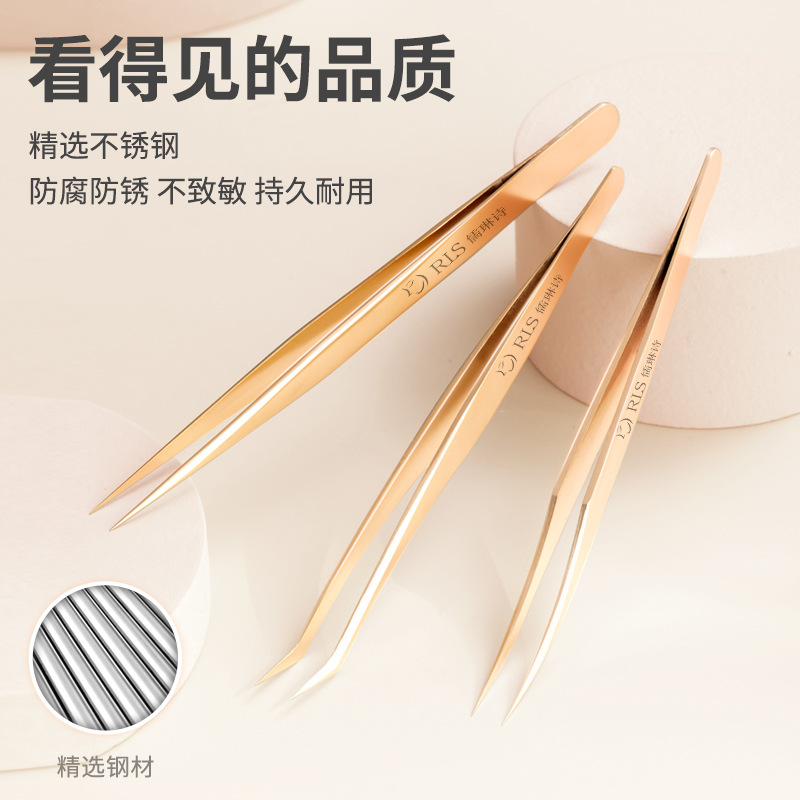 Ru Lin Shi False Eyelash Tweezers Eyelash Cleanser Grafting Eyelash Curler Golden Tweezers High Precision Beauty Makeup Tool