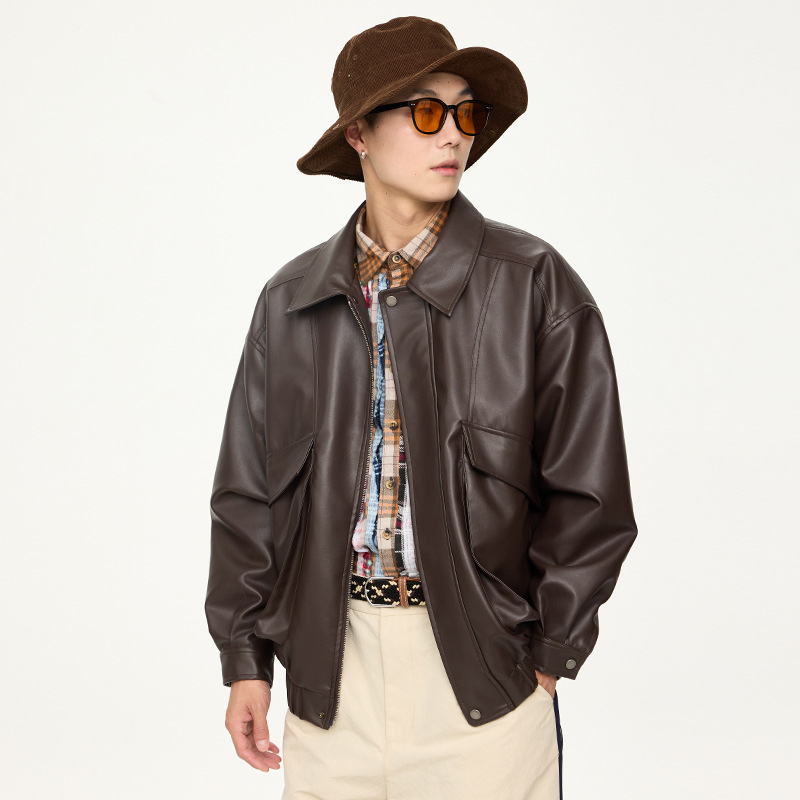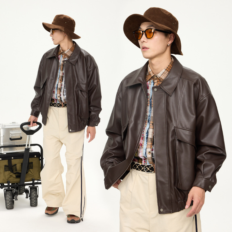 | nameOriginal | Ru Meng American retro PU motorcycle leather coat for men and women Spring and Autumn new high-grade Ruan handsome coat 2024 leather jacket |