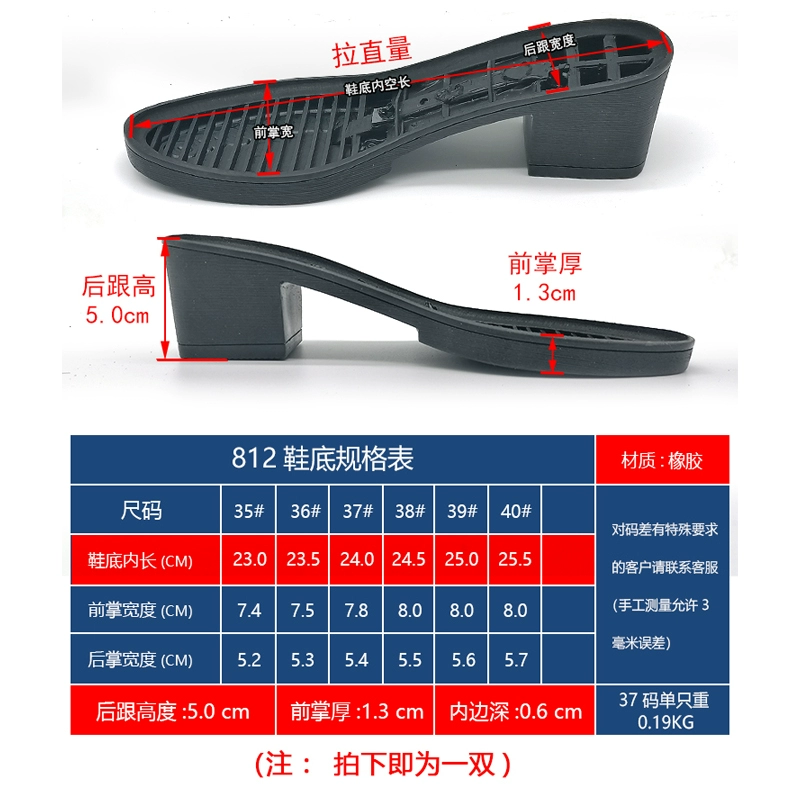 | nameOriginal | Rubber sole women's round toe thick heel shoe repair and replacement material sole repair and replacement plus wear-resistant sole sole |
