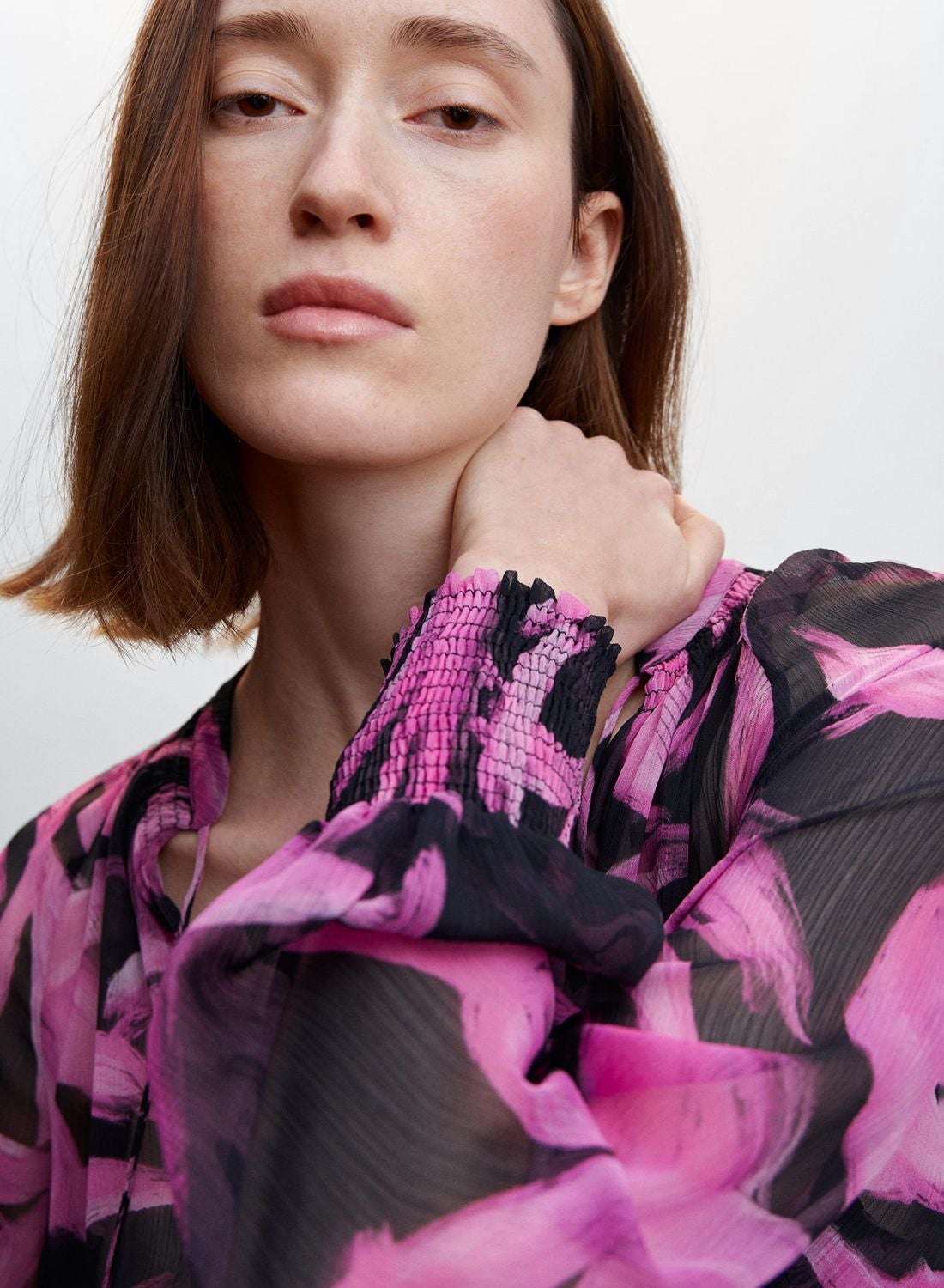 Printed Ruched Cuffed Top