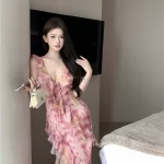 | nameOriginal | Ruffle summer resort style hip-hugging skirt v-neck vest |