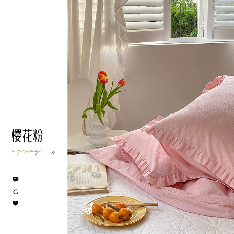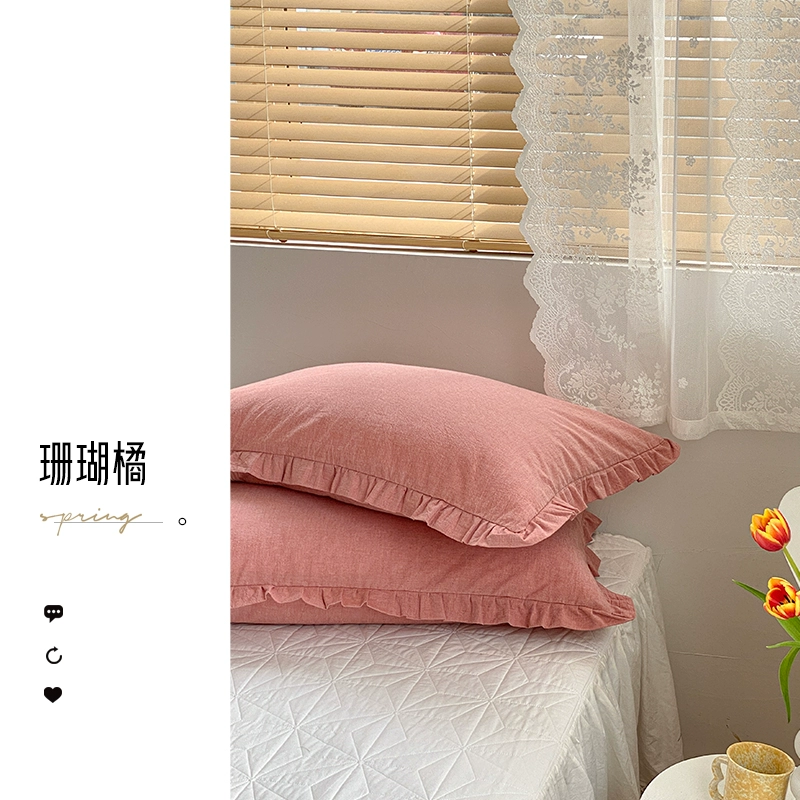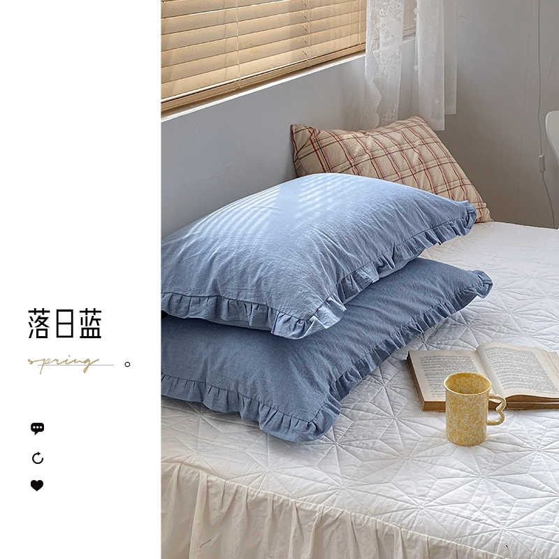 Ruffled cotton washed cotton single envelope pillowcase