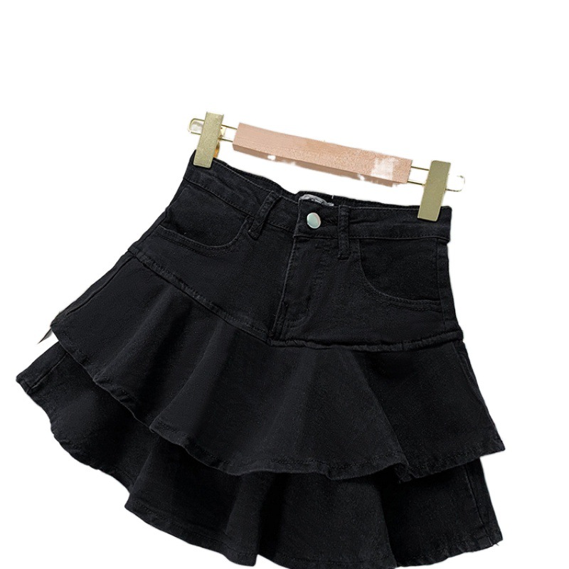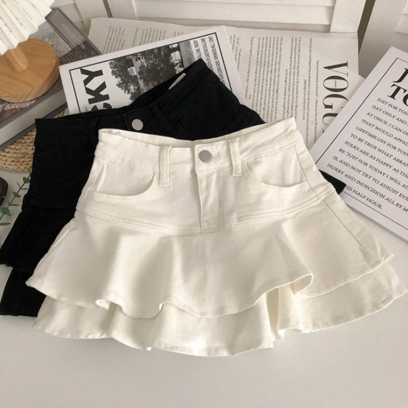 Ruffled Denim Skirt Women's 2024 Summer New High Waist Culottes Small Sweet Spice Girl Slimming Short Skirt