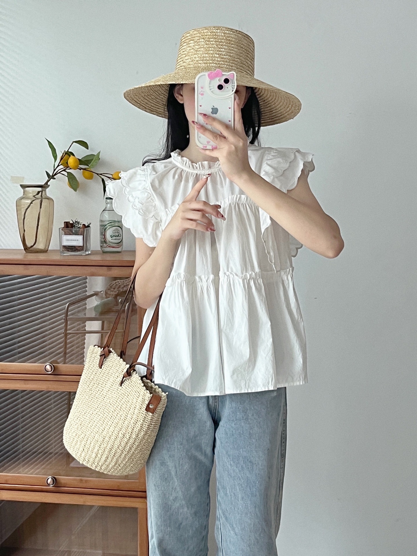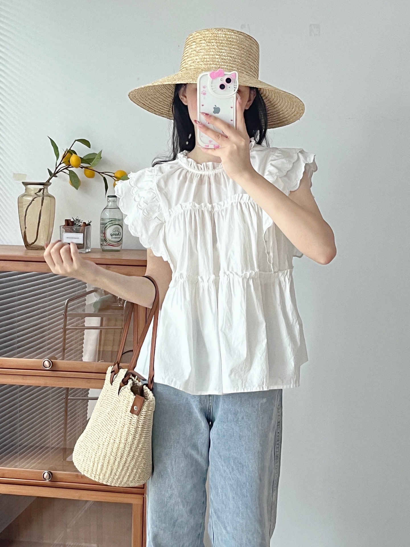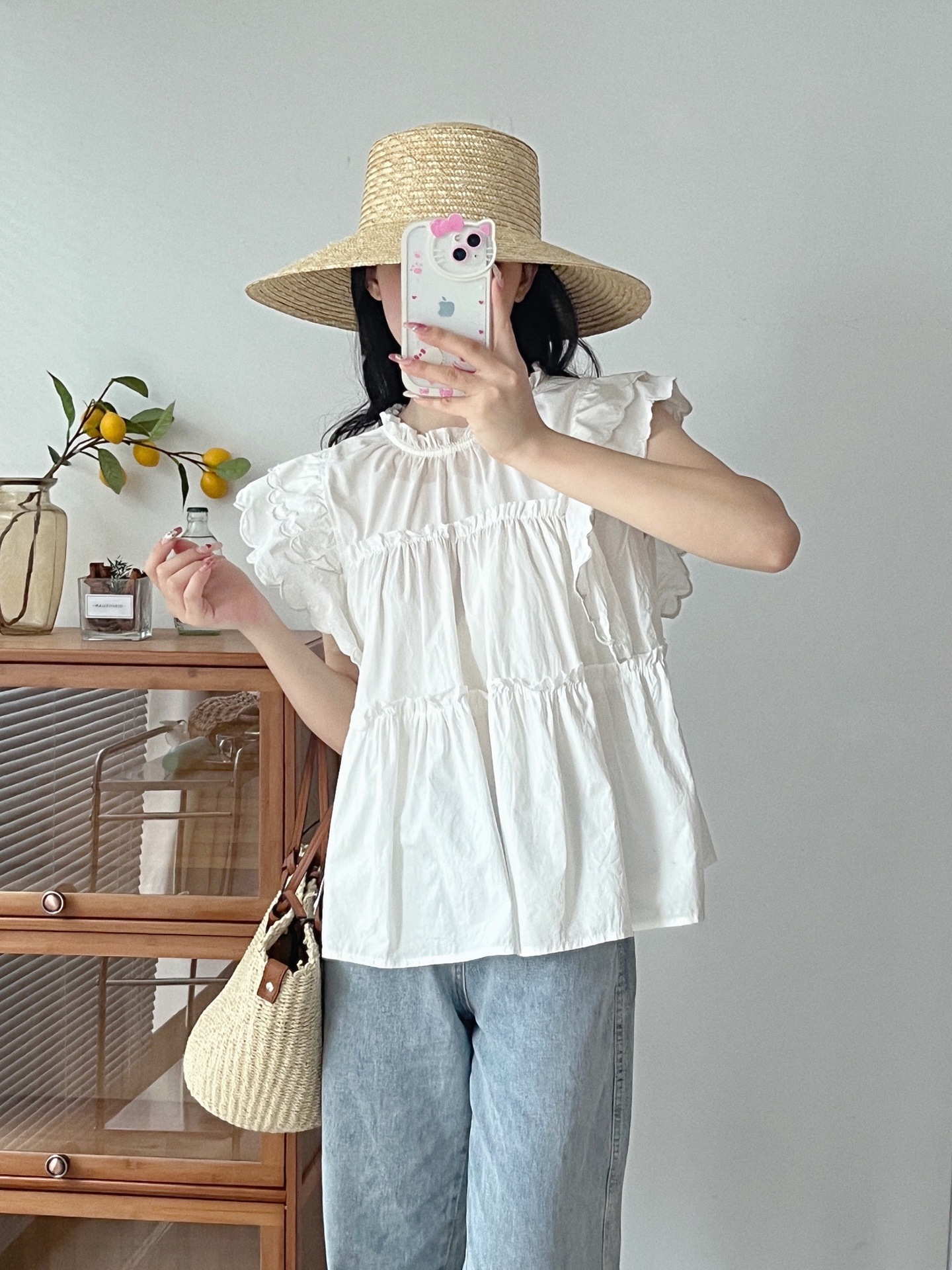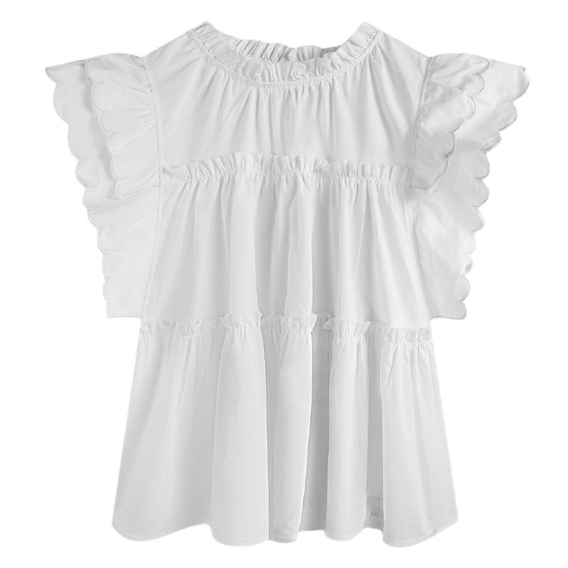 | nameOriginal | Ruffled Niche French White Shirt Women's Summer Loose Small Flying Sleeve Doll Shirt Petite Design Sense Top |
