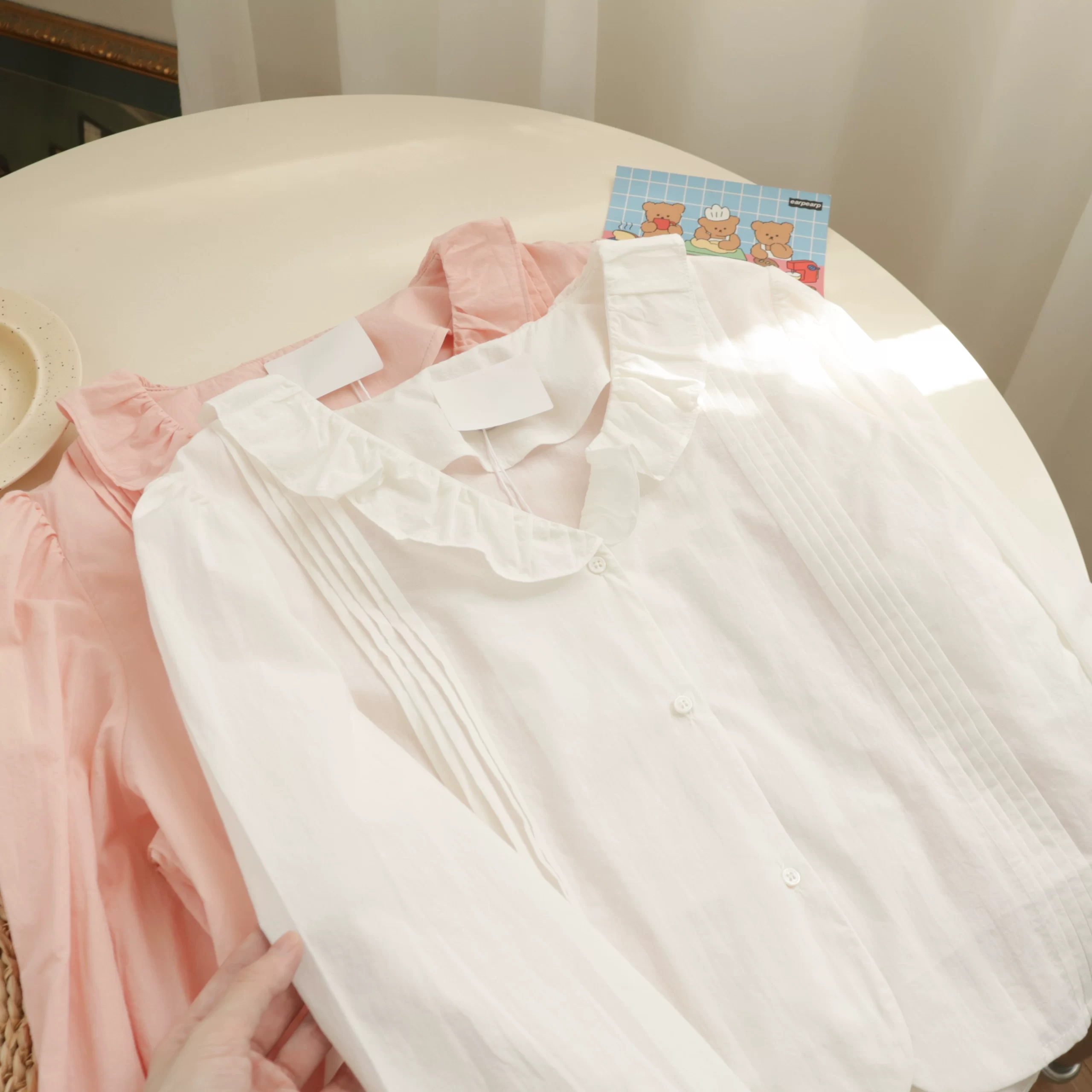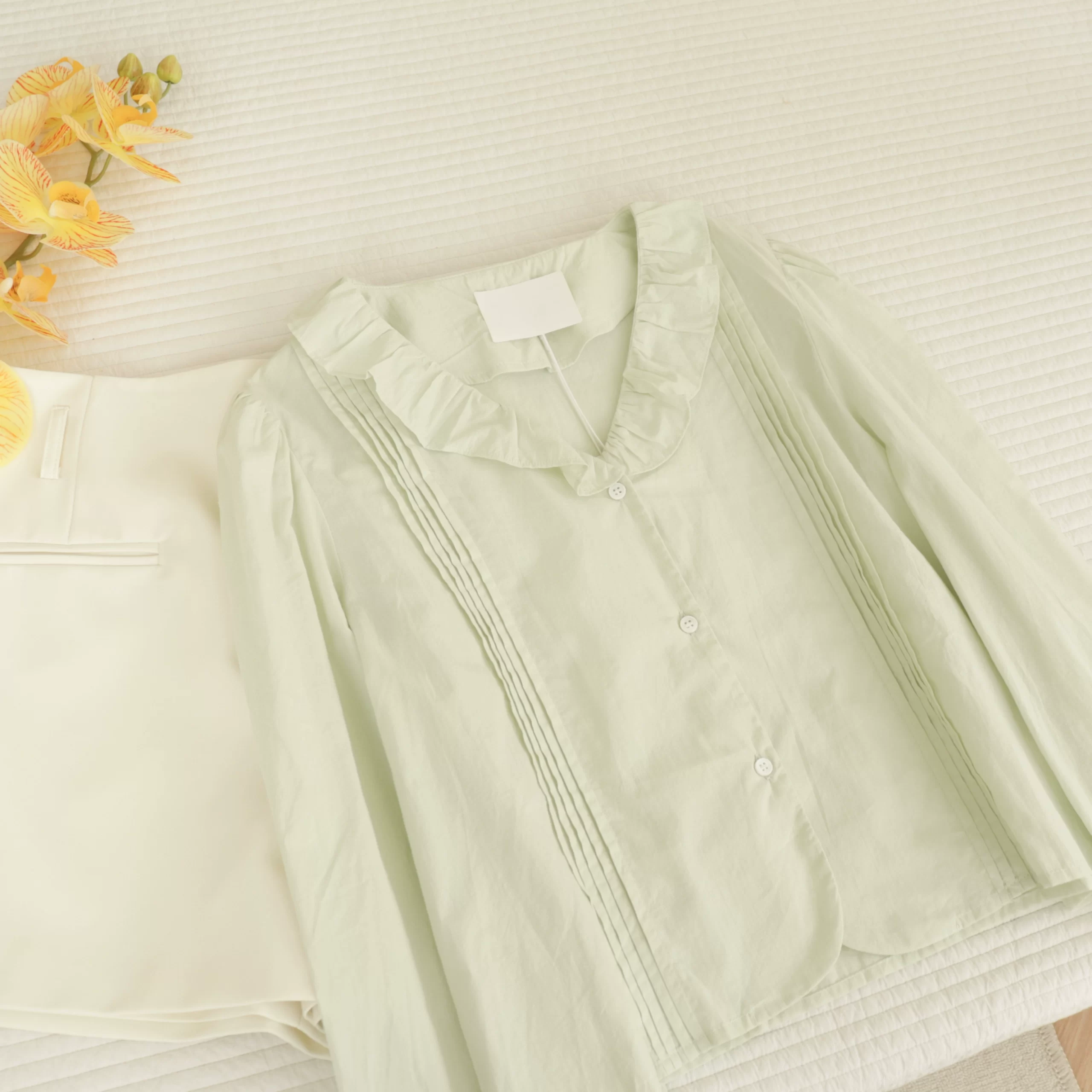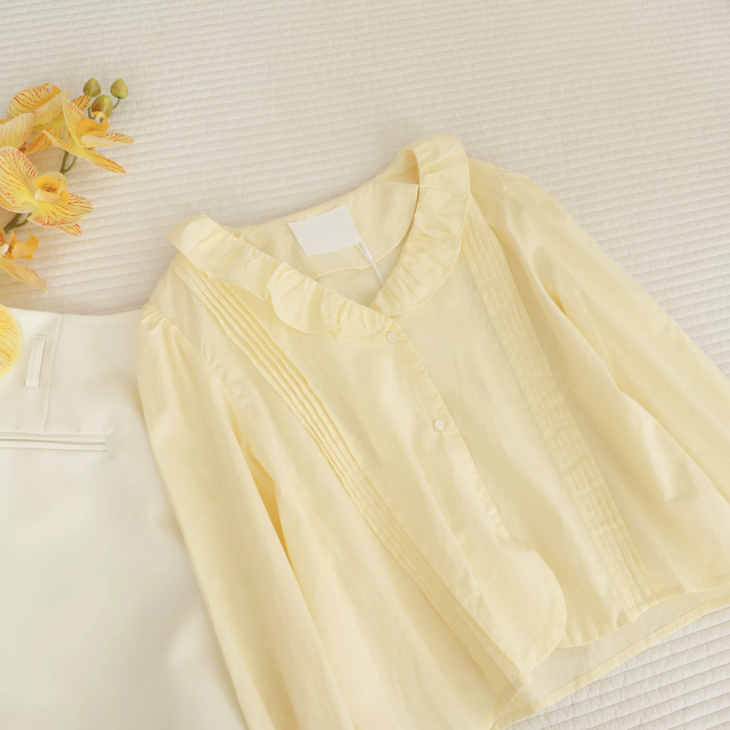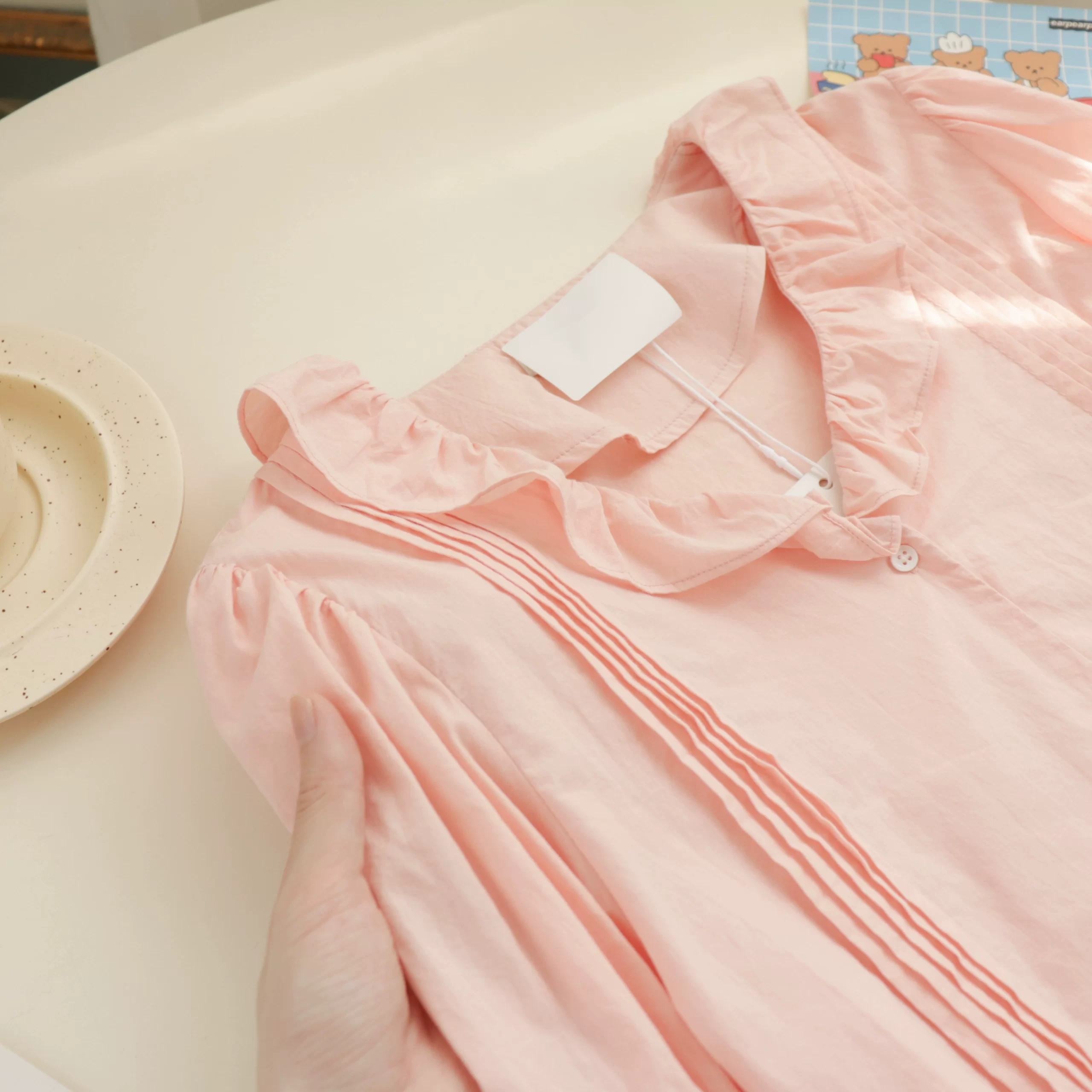 | nameOriginal | Ruffled pleated loose short long-sleeved thin shirt |