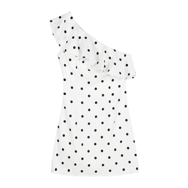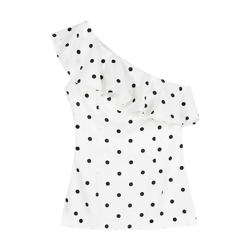 | nameOriginal | Ruffled polka dot slanted shoulder women's fitted chic vest |