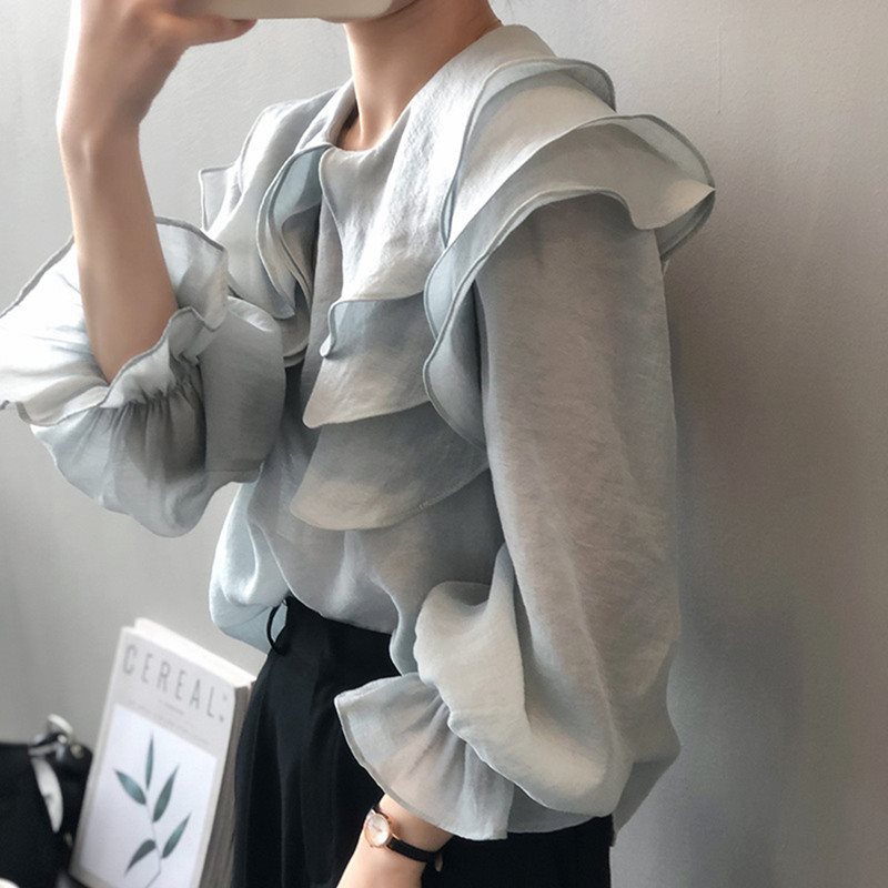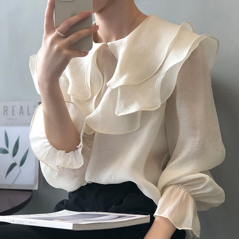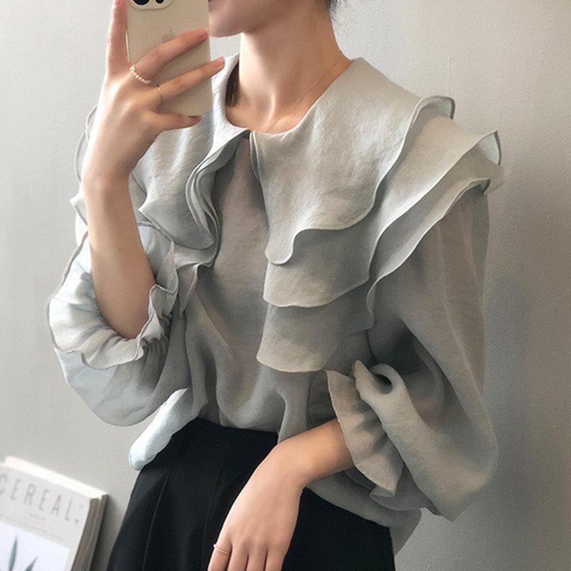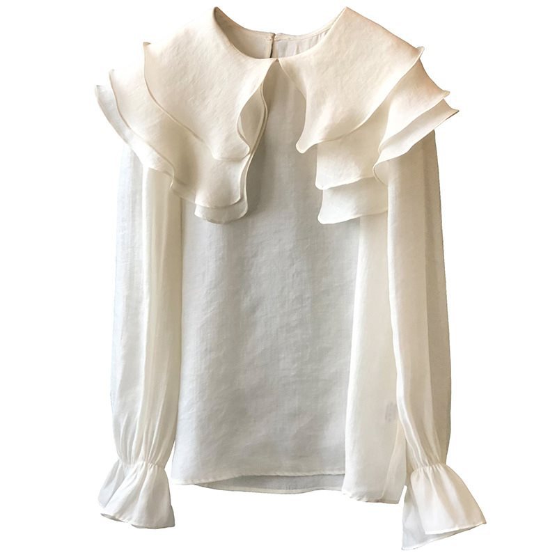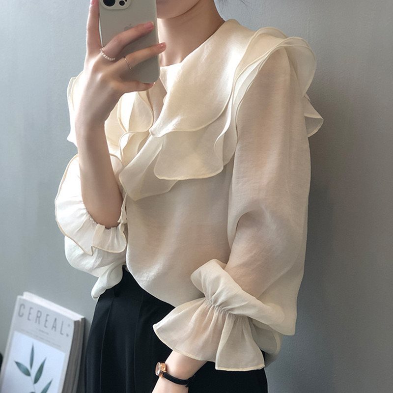 | nameOriginal | Ruffled shirt Women's Spring and Autumn design sense niche French style top small doll collar puff sleeve Tencel Shirt |