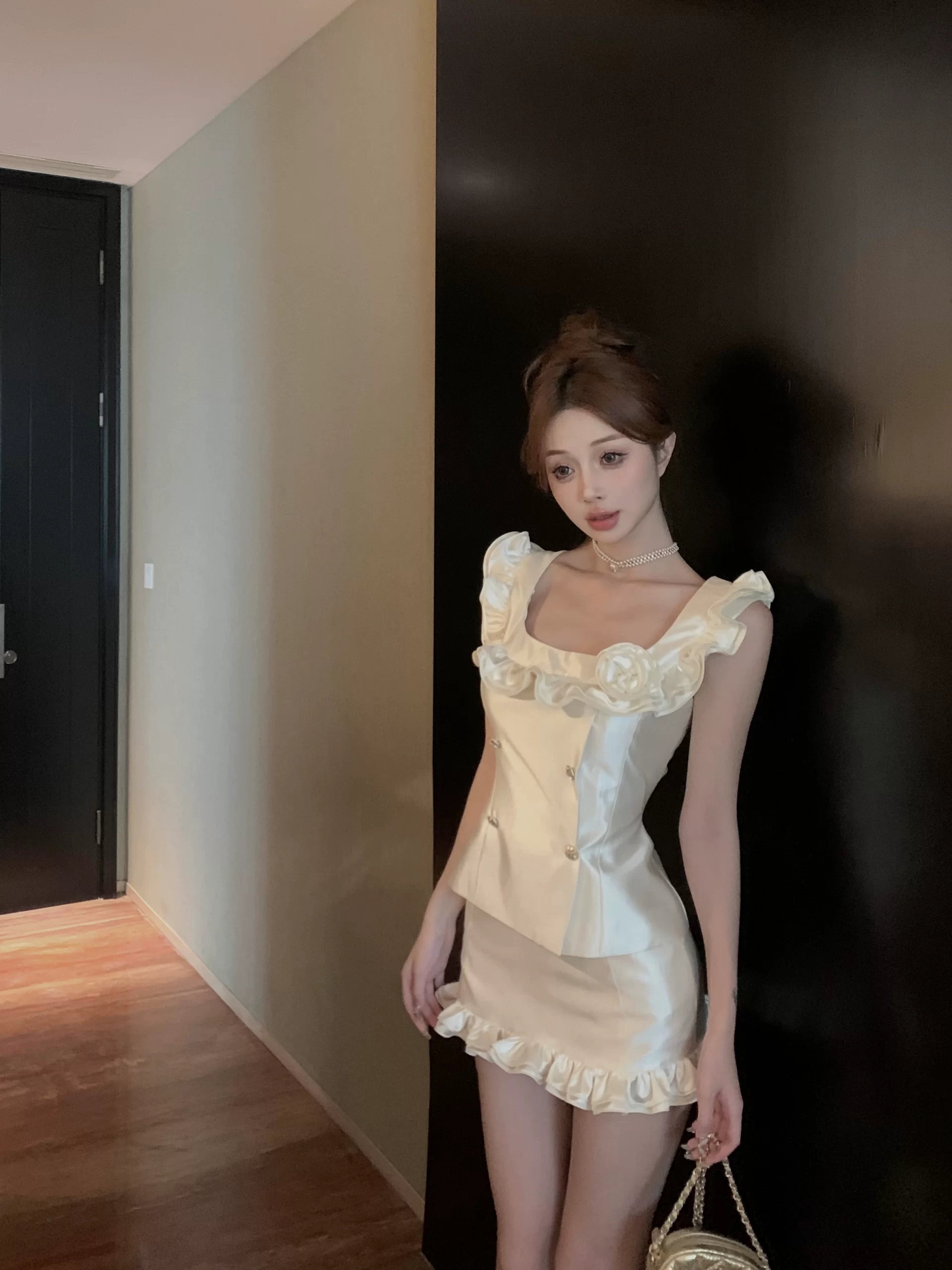 | nameOriginal | Ruffled short women's summer hip-hugging two-piece flower set |