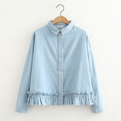 | nameOriginal | Ruffled solid color loose denim long-sleeved shirt |