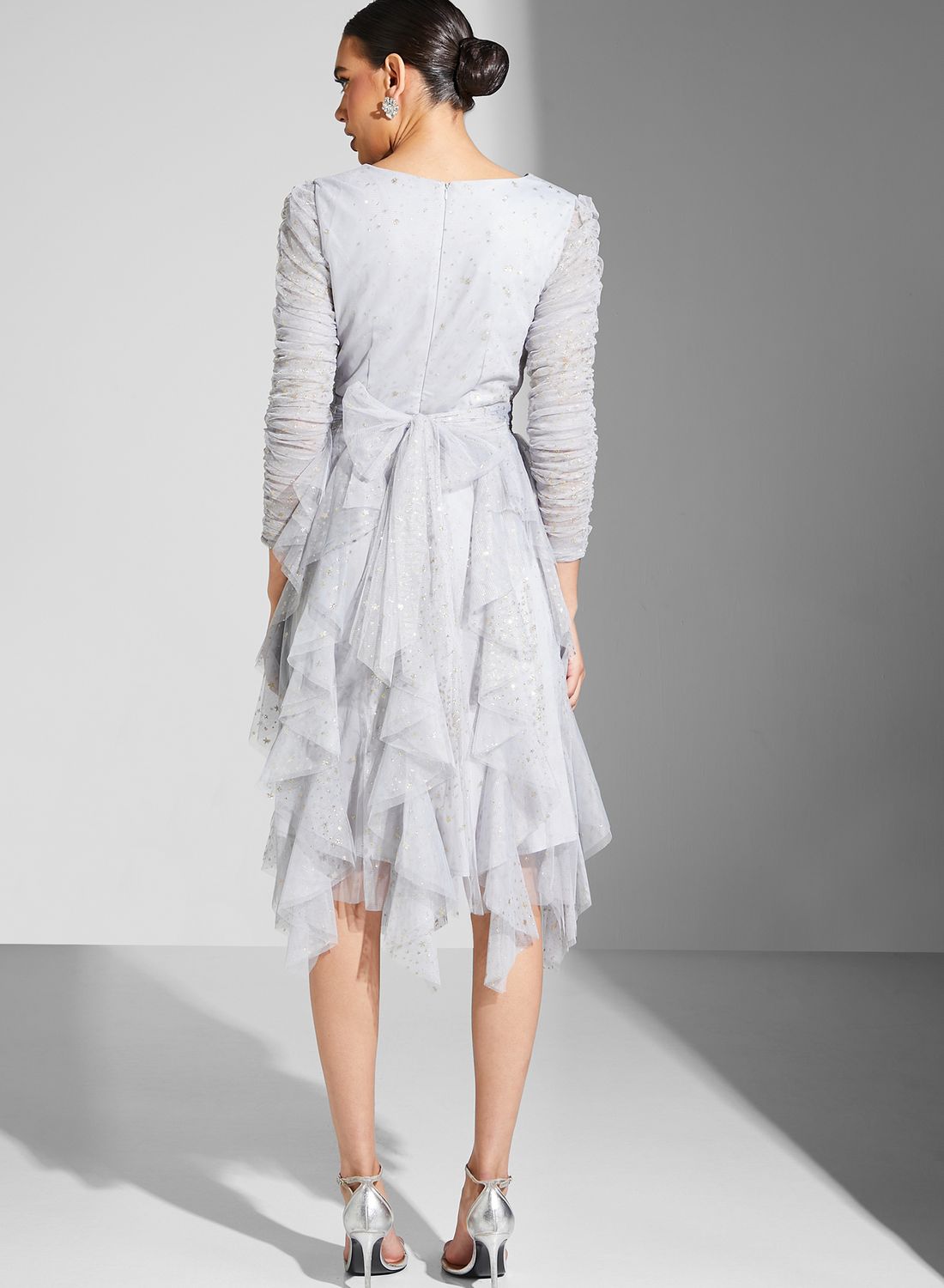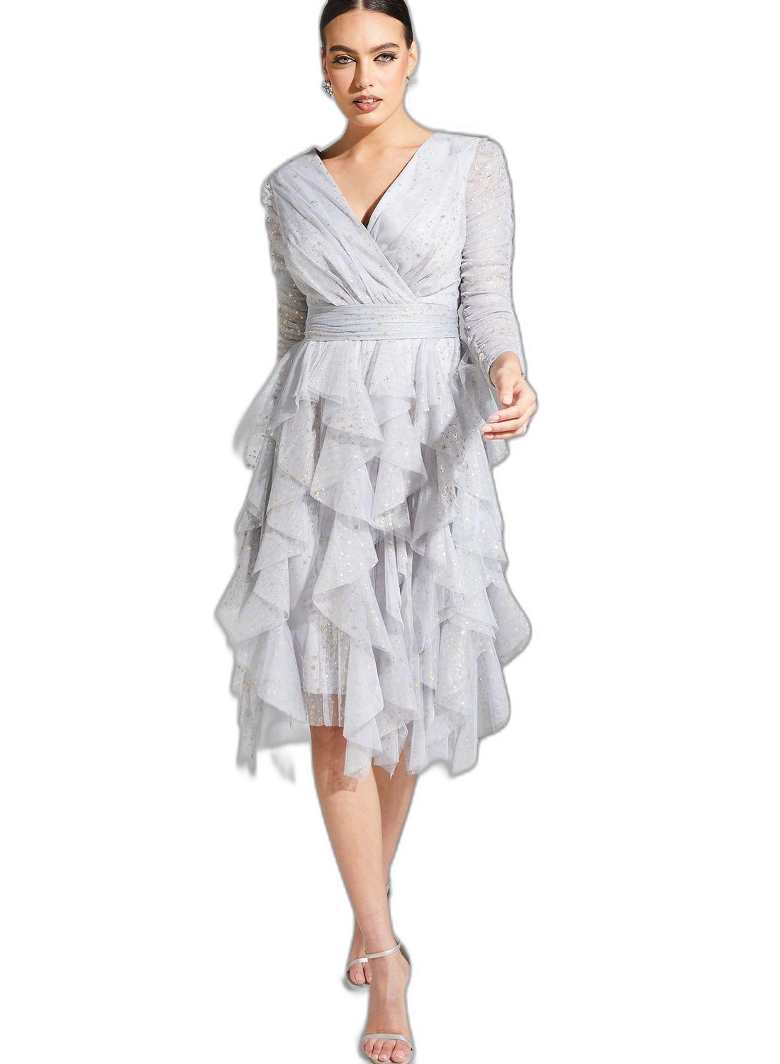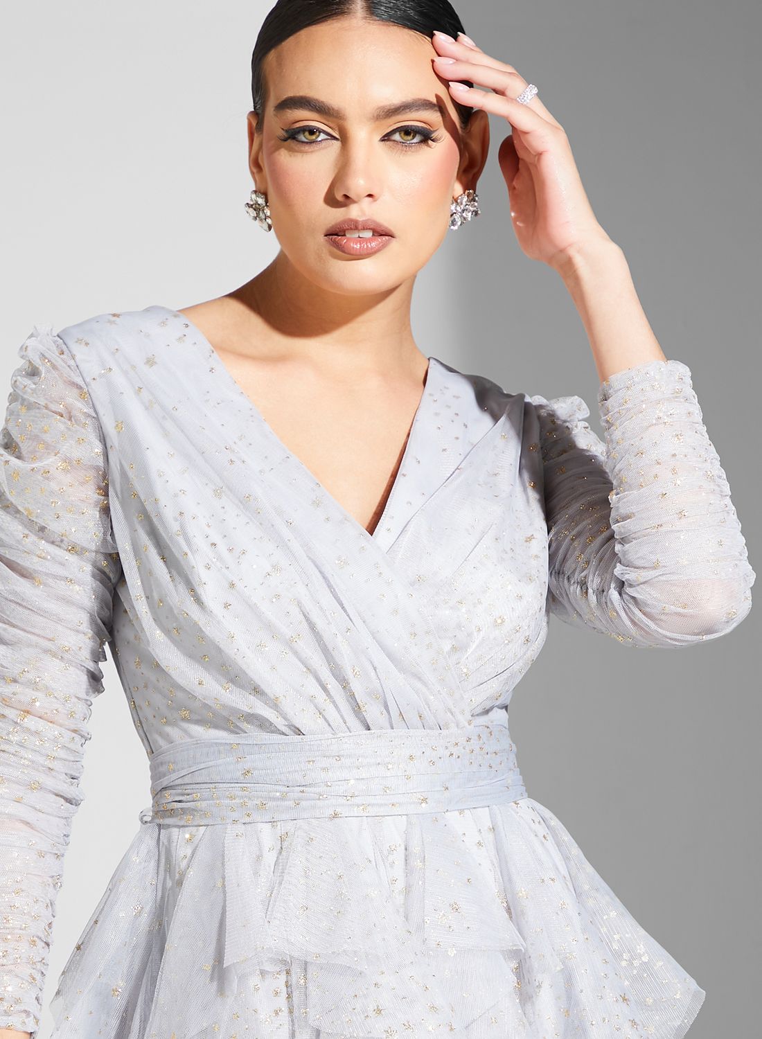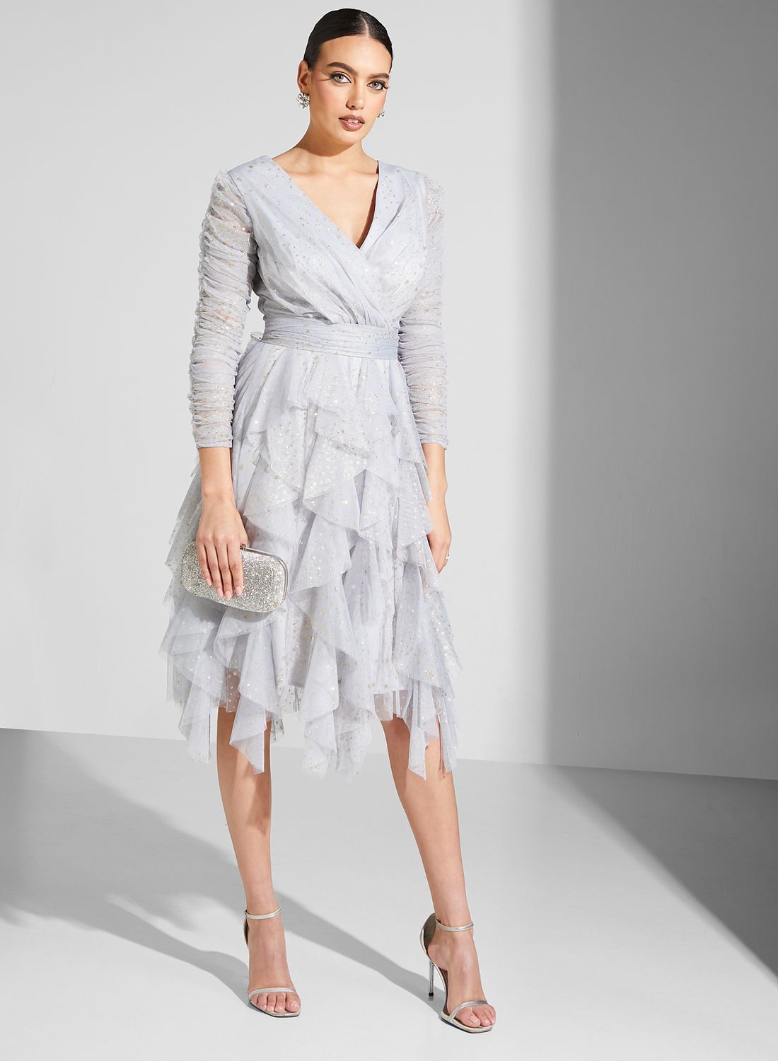 | nameOriginal | Surplice Neck Ruffle Dress |