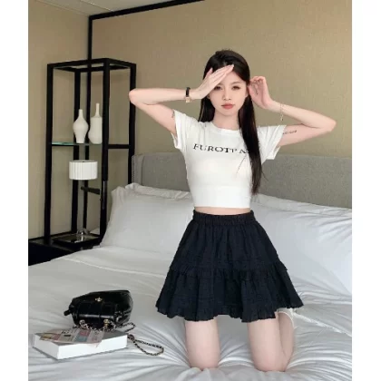 | nameOriginal | Ruffled white women's gentle style cake skirt |