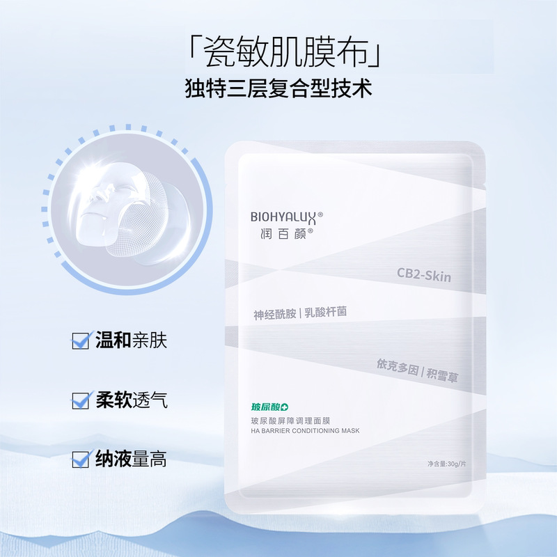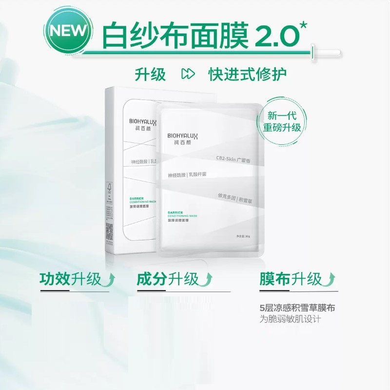 Runbaiyan hyaluronic acid barrier conditioning white gauze mask 5 pieces hydrating repair soothing Centella asiatica Huaxi Biological