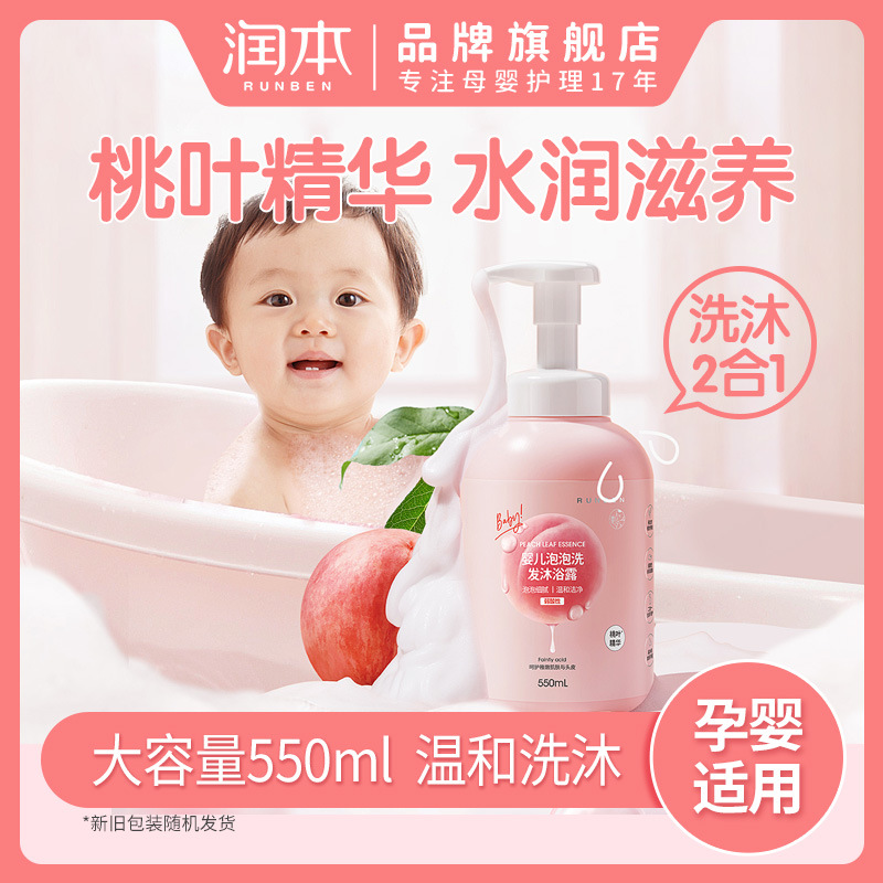 | nameOriginal | Runben Peach Leaf Shower Cream Shampoo Two-in-One Baby Children Baby Foam Gentle Wash and Clean |