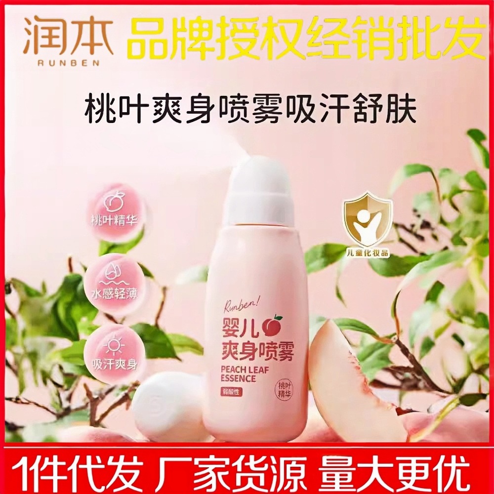 | nameOriginal | Runben Peach Water Baby Body Dew Spray for Newborn Baby Heat Powder Liquid Powder Peach Leaf Essence |