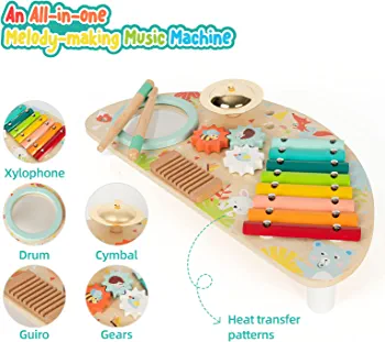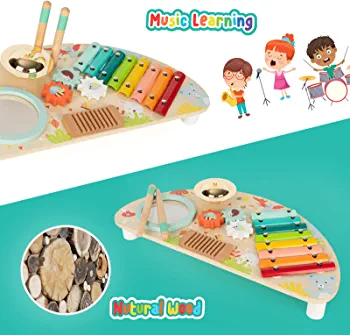 | nameOriginal | Baby Toys Musical Instruments, All-in-one Musical Toys for Toddlers 1-3 (Includes Xylophone Drum Cymbal Guiro Gears), Wooden Montessori Toys for 1 Year Old Boy & Girl by Rundad |