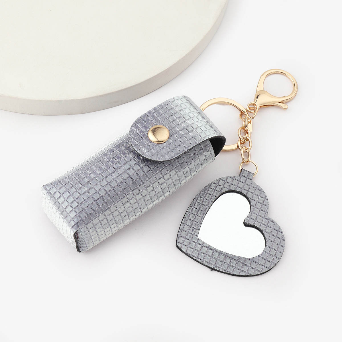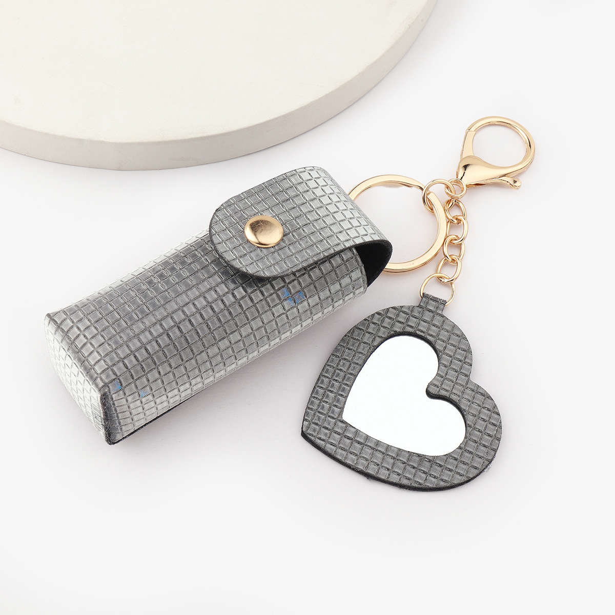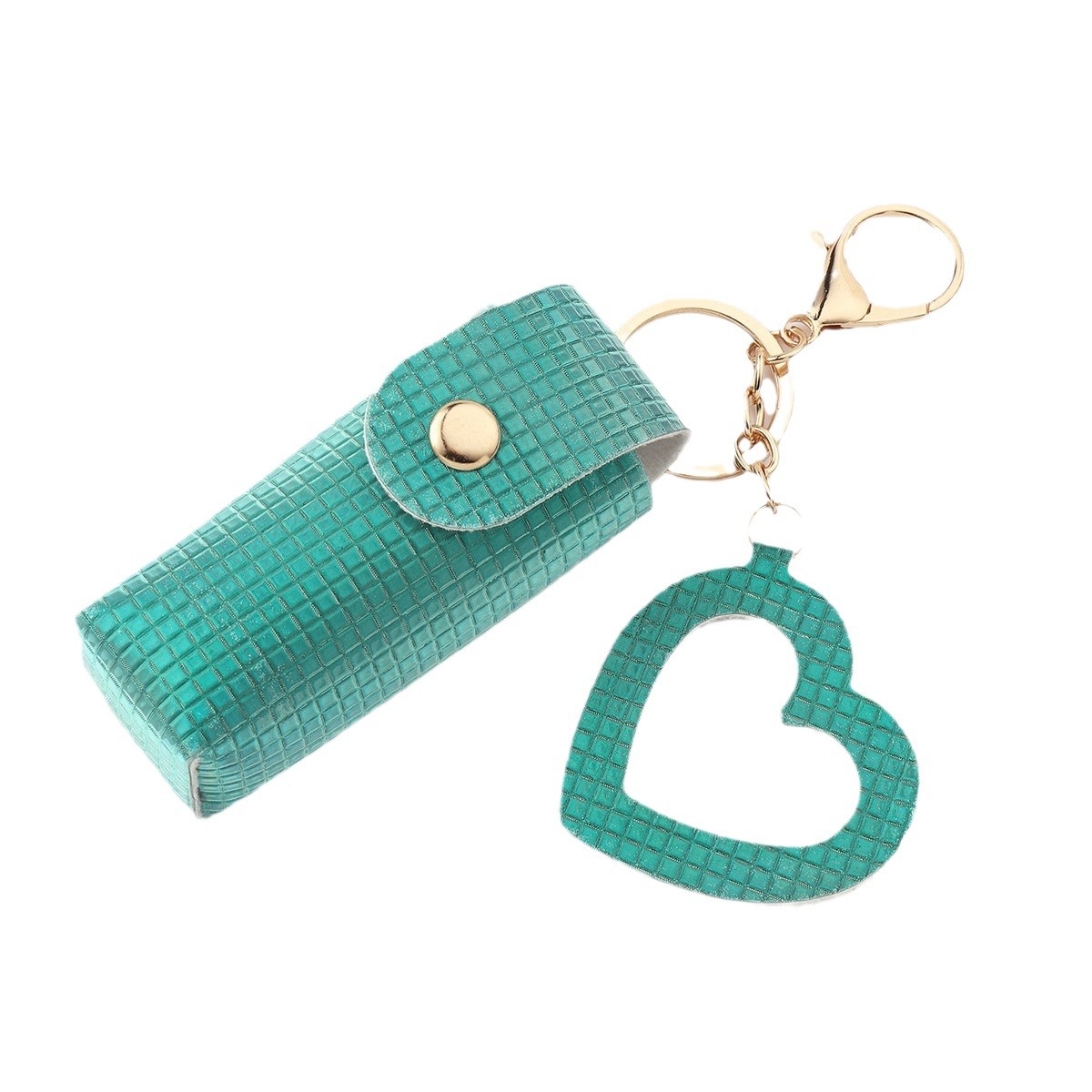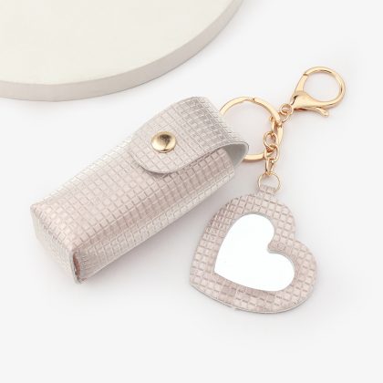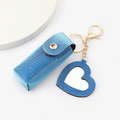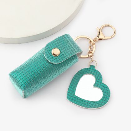 Ruoguo leather products easy to carry sequins Plaid gree with mirror lipstick bag pendant lipstick