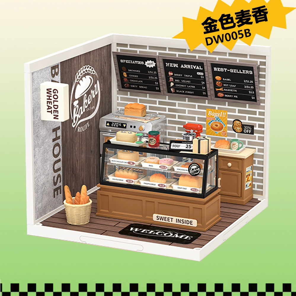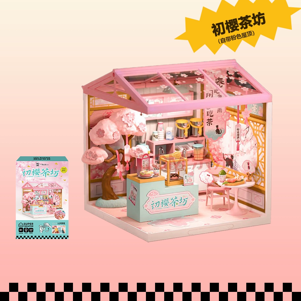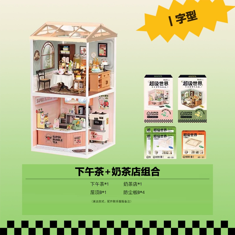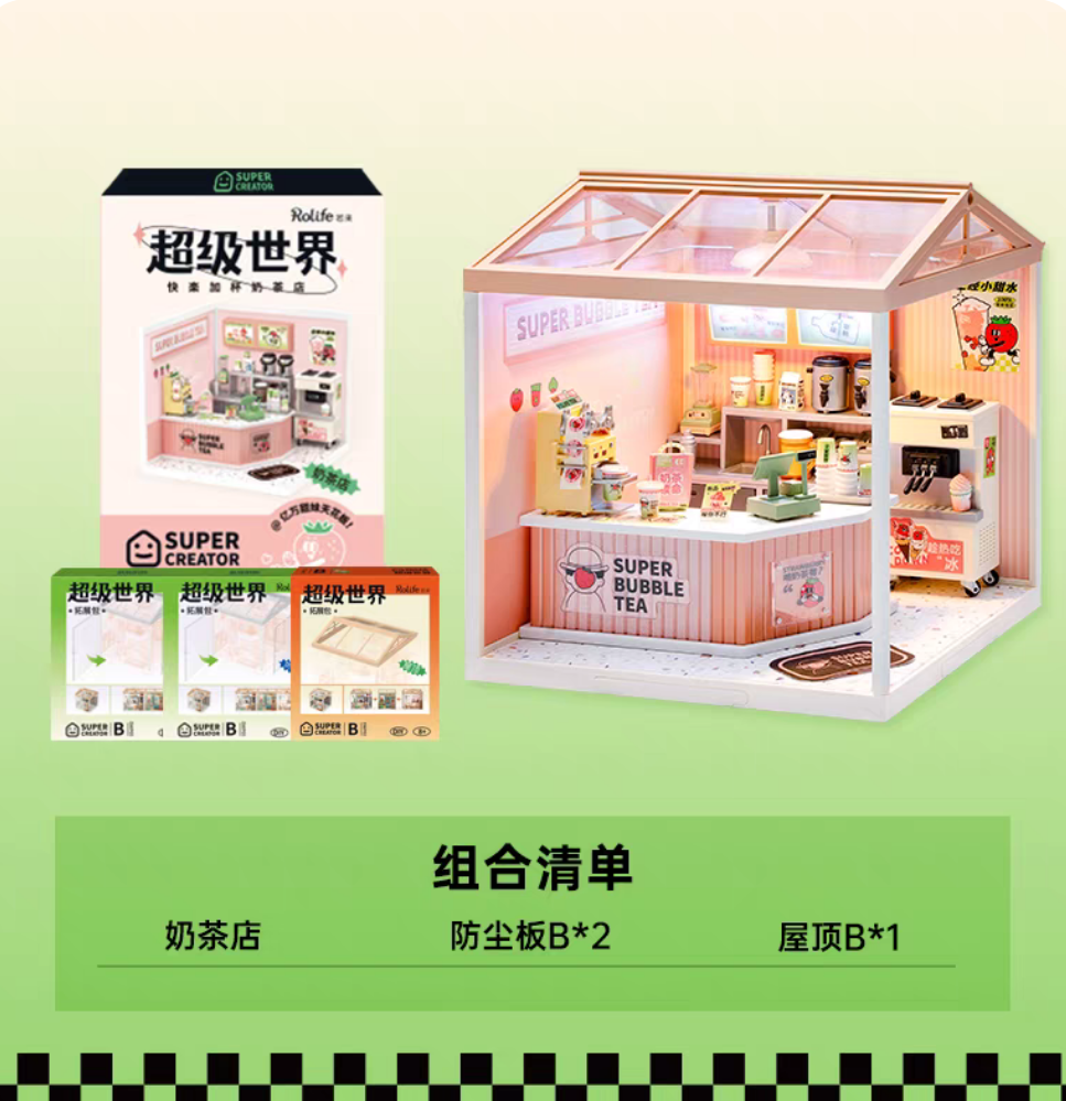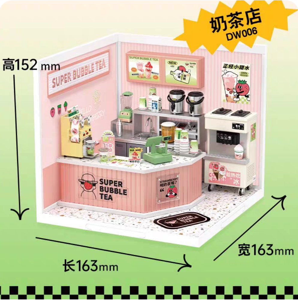 Ruolai Super World Milk Tea Shop DIY Hut Puzzle Assembling Building Blocks Toy Miniature Scene Children's Day Gift