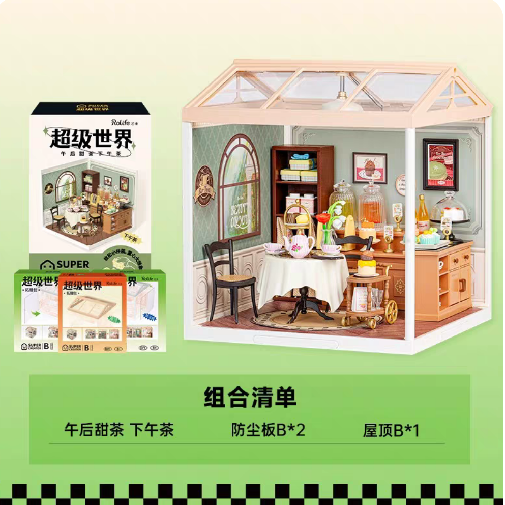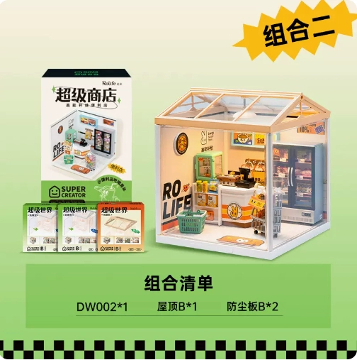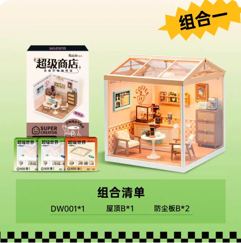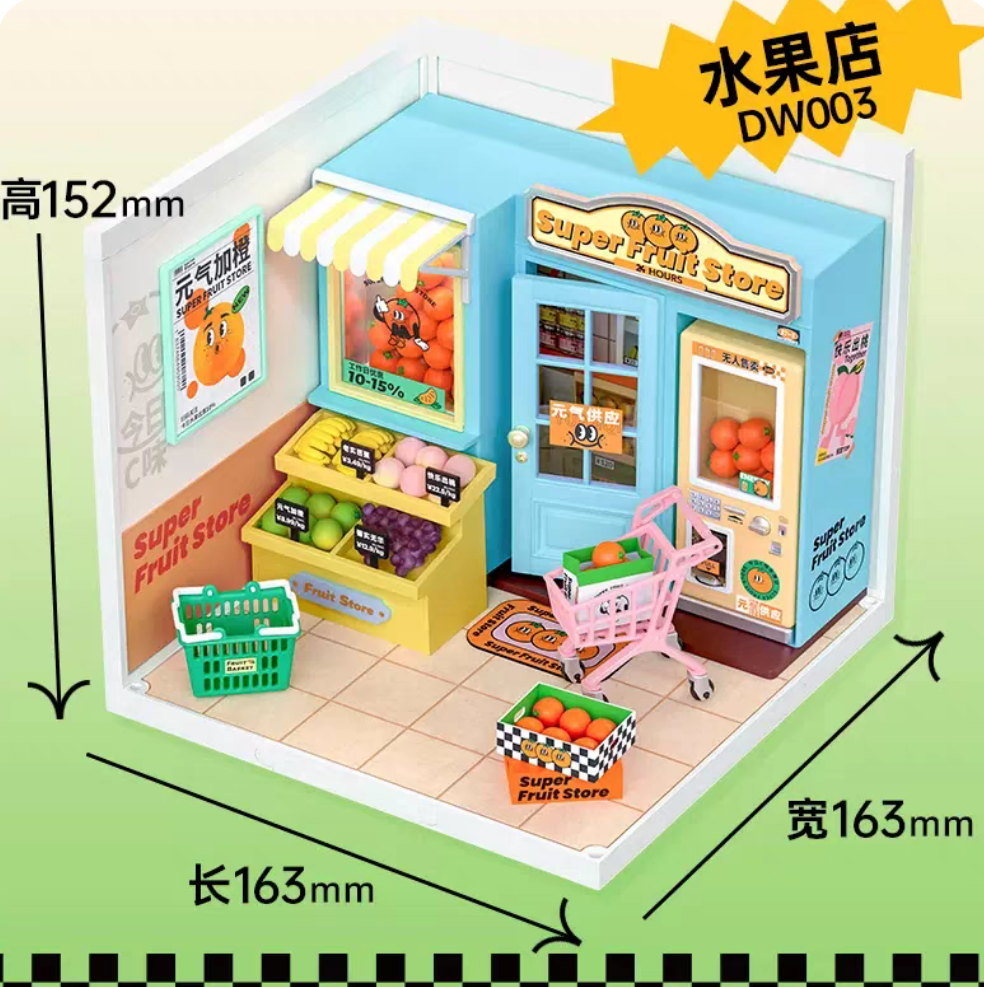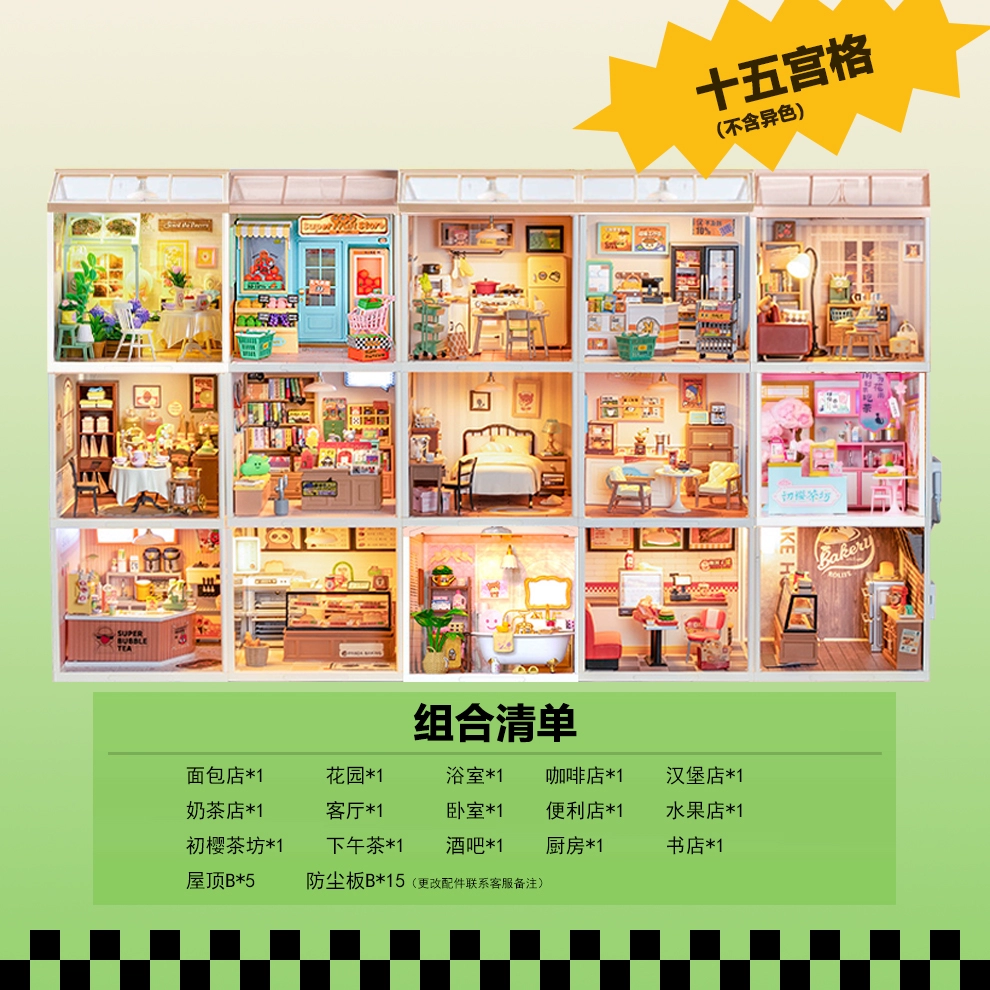 Ruolai Super World Milk Tea Shop DIY Hut Puzzle Assembling Building Blocks Toy Miniature Scene Children's Day Gift