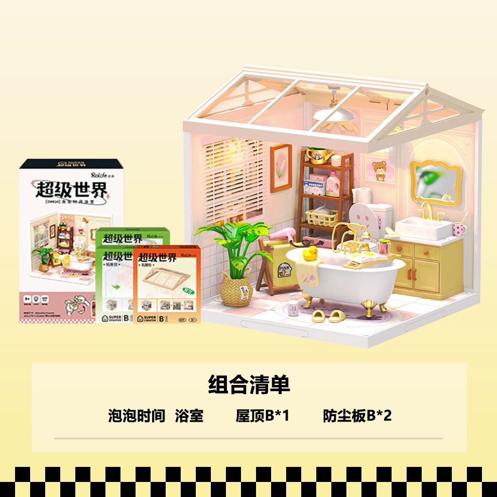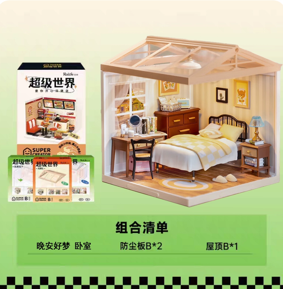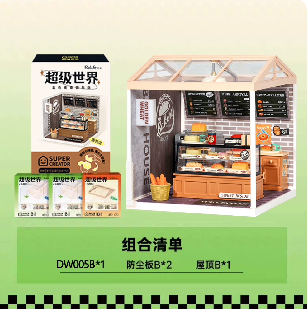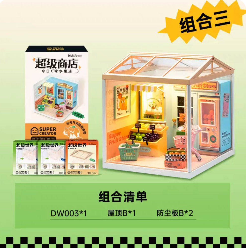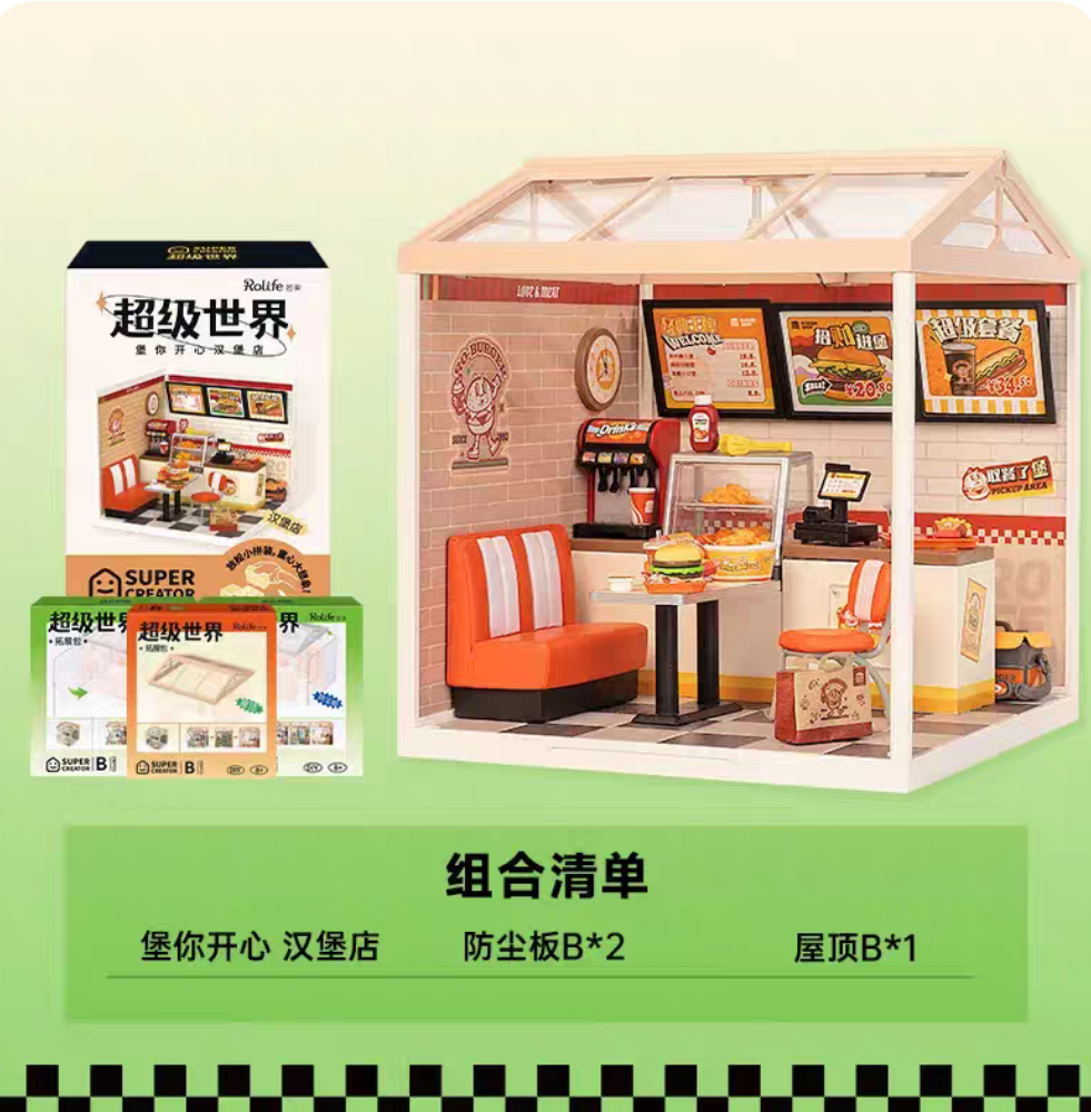 Ruolai Super World Milk Tea Shop DIY Hut Puzzle Assembling Building Blocks Toy Miniature Scene Children's Day Gift